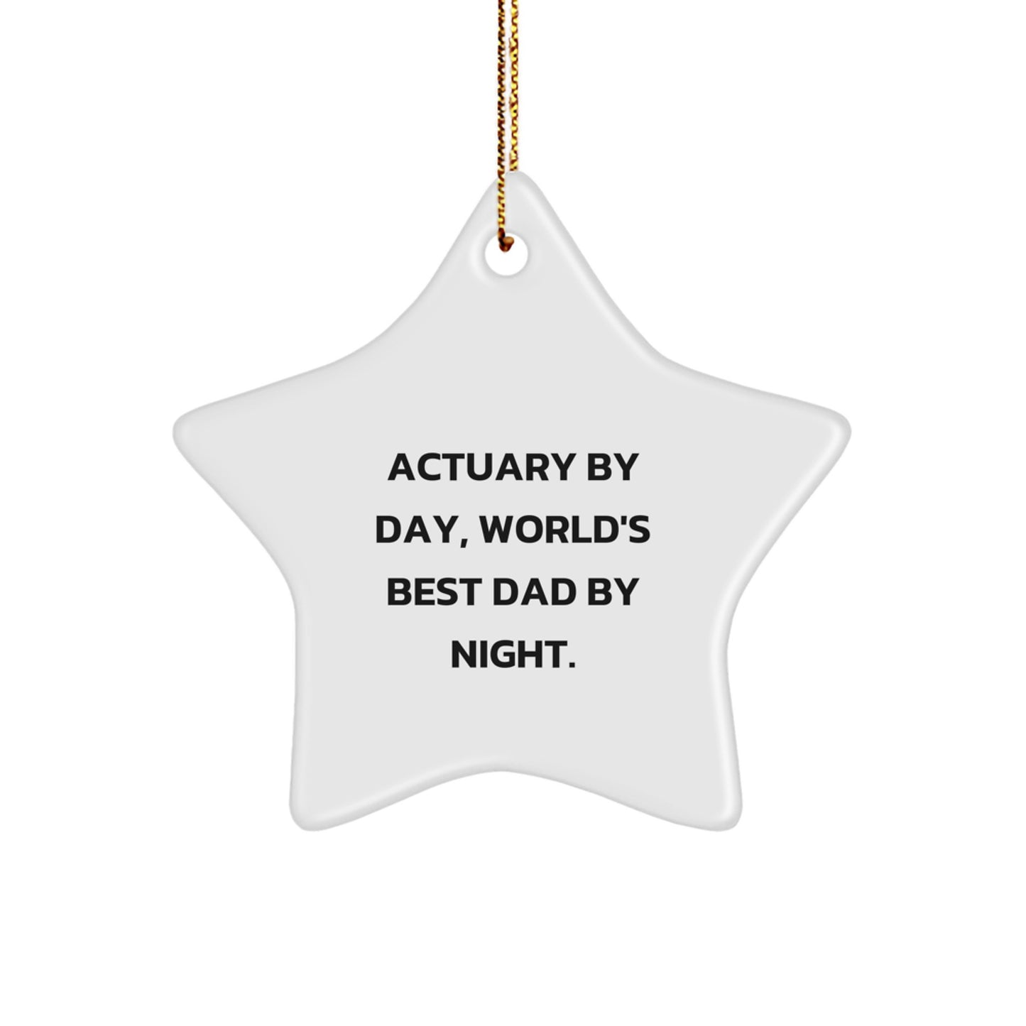 - Add a touch of humor to your Christmas decorations with this unique Actuary-themed Star Ornament, featuring the funny quote 'Actuary By Day, World's Best Dad By Night.'