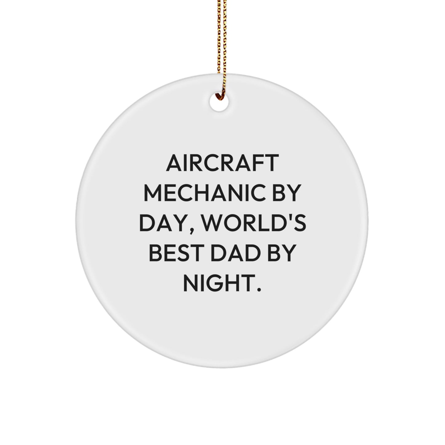 Aircraft Mechanic Gifts, Funny Circle Ornament for Men, 'Aircraft Mechanic By Day, World's Best Dad By Night.' Quote, Unique Christmas Unique Gifts from Friends to Family