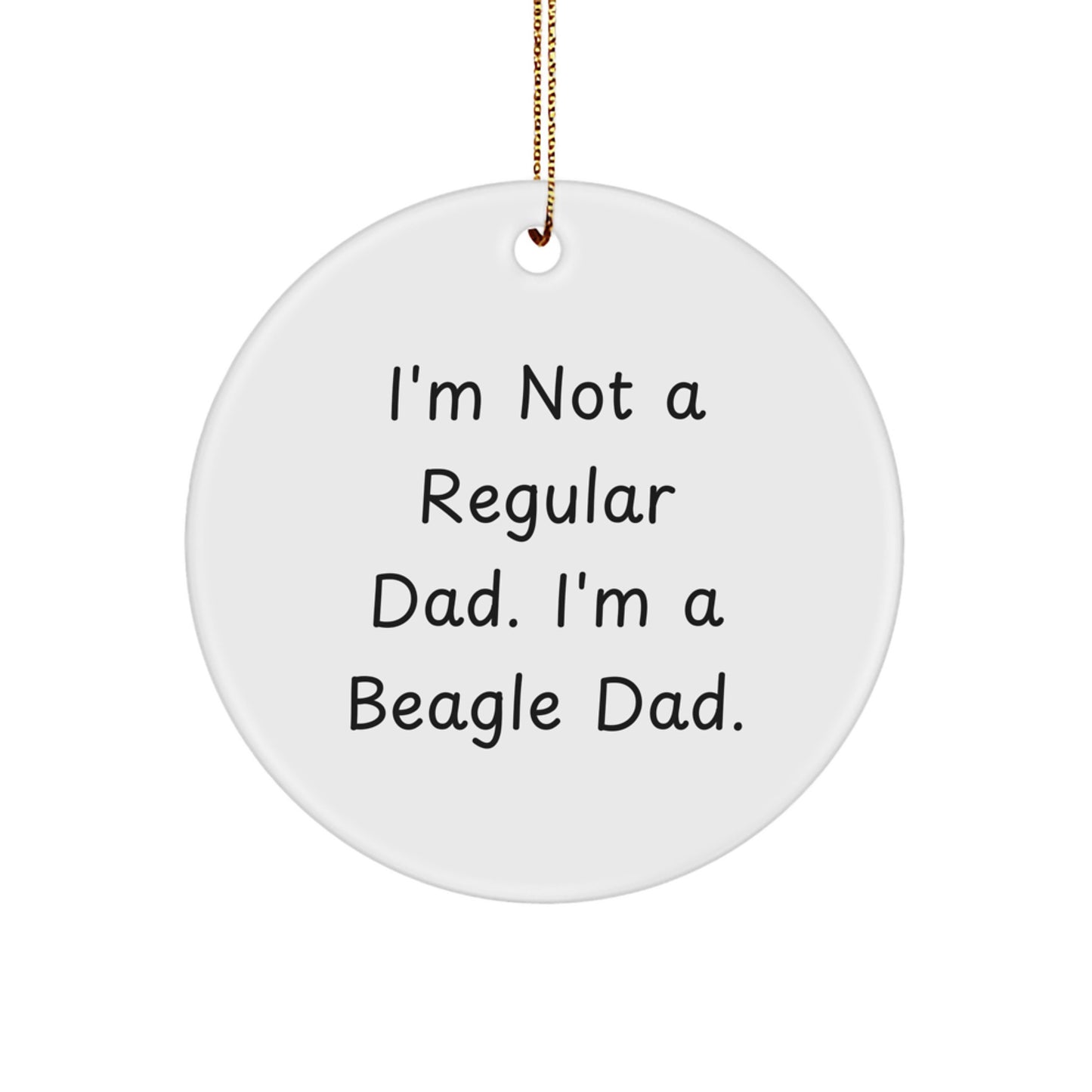 - Add a touch of humor to your Christmas tree with this funny Circle Ornament featuring the quote 'I'm Not A Regular Dad. I'm A Beagle Dad.'