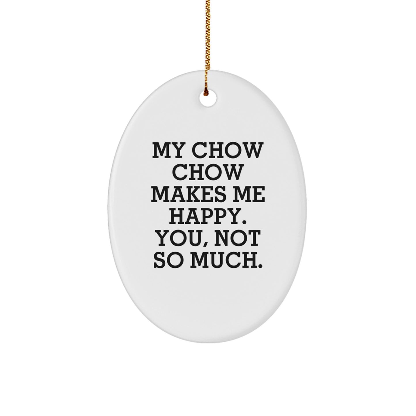 - This oval ornament is the perfect way to show off your love for Chow Chows and bring a smile to their face with its funny quote, 'My Chow Chow Makes Me Happy. You, Not So Much.'