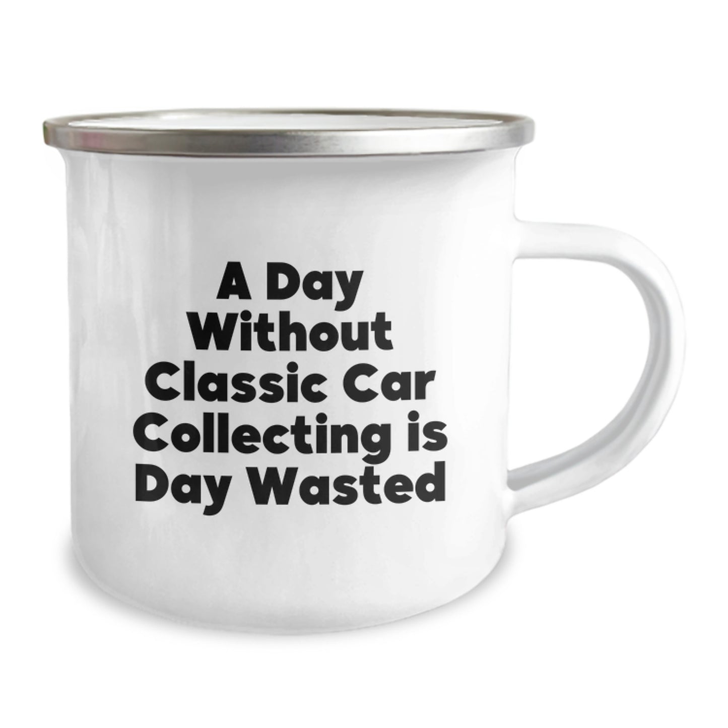 Classic Car Collecting Gifts for Men - 'A Day Without Classic Car Collecting Is Day Wasted' Enamel Camping Mug, Gifts from Friends and Family for Birthday