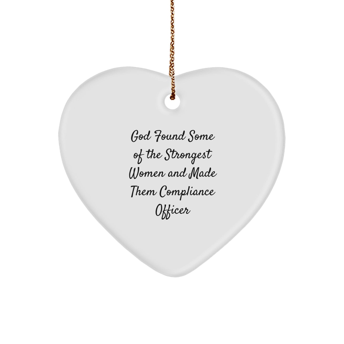 Are you searching for a unique gift for the strong and powerful Compliance Officer in your life? Look no further! This Compliance Officer Heart Ornament is a thoughtful and funny way to show your appreciation for her hard work and dedication. God found some of the strongest women and made them Compliance Officers, and this gift is a testament to their strength and resilience.