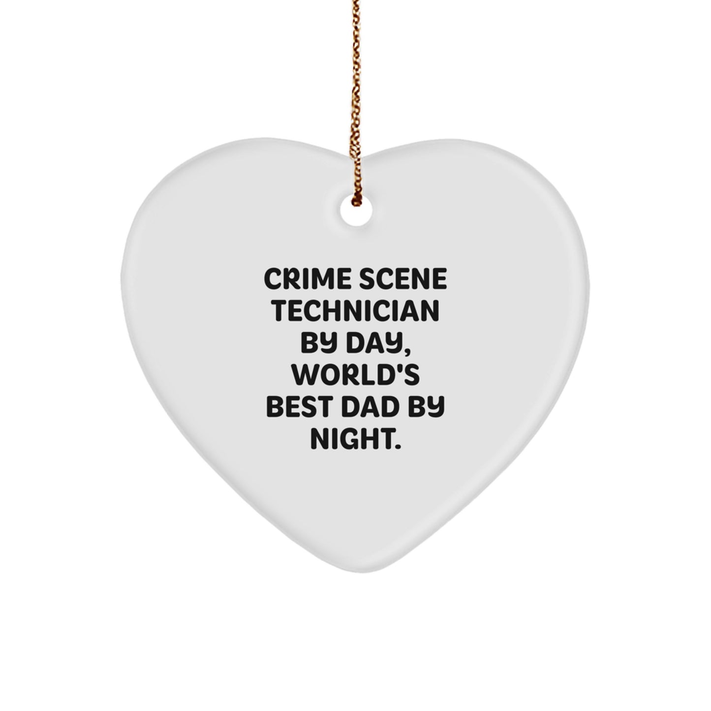 Are you a fan of the intriguing world of crime scene technicians? Do you know someone who dedicates their days to solving mysteries? Give them a thoughtful gift that showcases their unique profession. This heart-shaped ornament, featuring the quote 'Crime Scene Technician By Day, World's Best Dad By Night', is a thoughtful present for men who are both professionals and loving fathers.