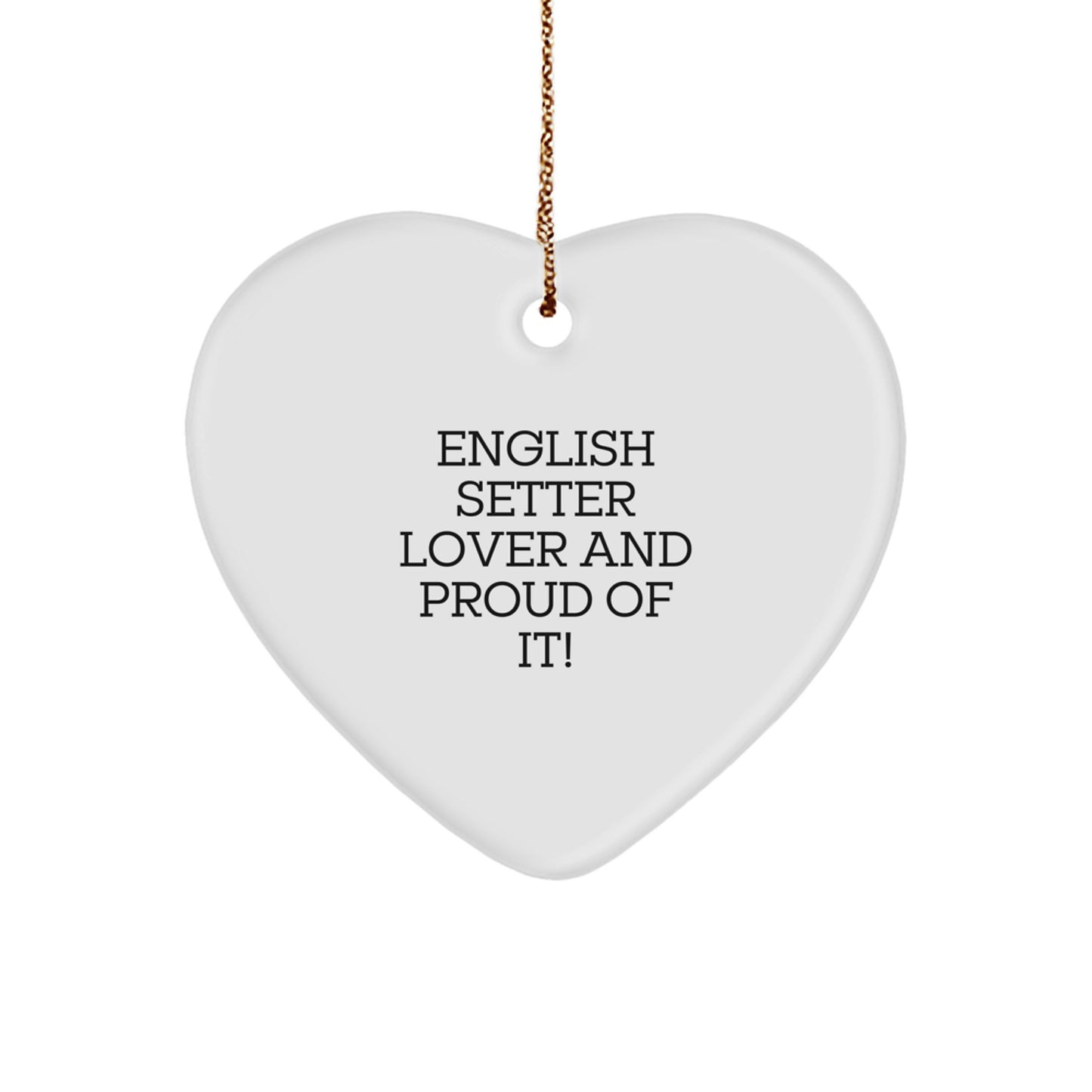 English Setter Dog Lover Gifts from Friends and Family - Heart Ornament with Funny Quote 'English Setter Lover And Proud Of It!' for Christmas Unique Gifts