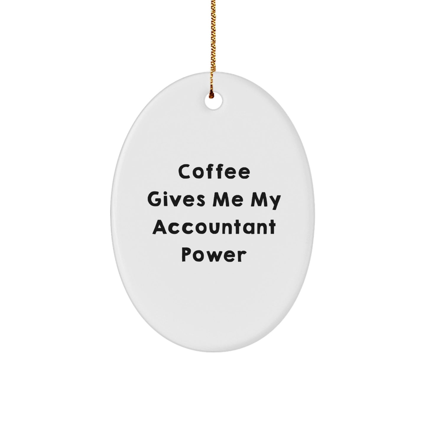 Funny Accountant Gifts from Friends - Oval Ornament for Christmas with 'Coffee Gives Me My Accountant Power' Quote, Gifts for Accountants