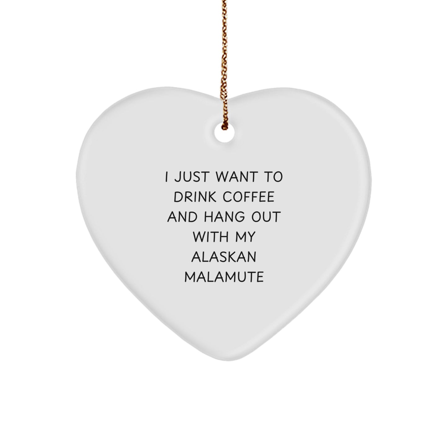 Funny Alaskan Malamute Dog Gifts from Men to Alaskan Malamute Dog Lovers - I Just Want to Drink Coffee and Hang Out with My Alaskan Malamute - Heart Ornament for Christmas Unique Gifts