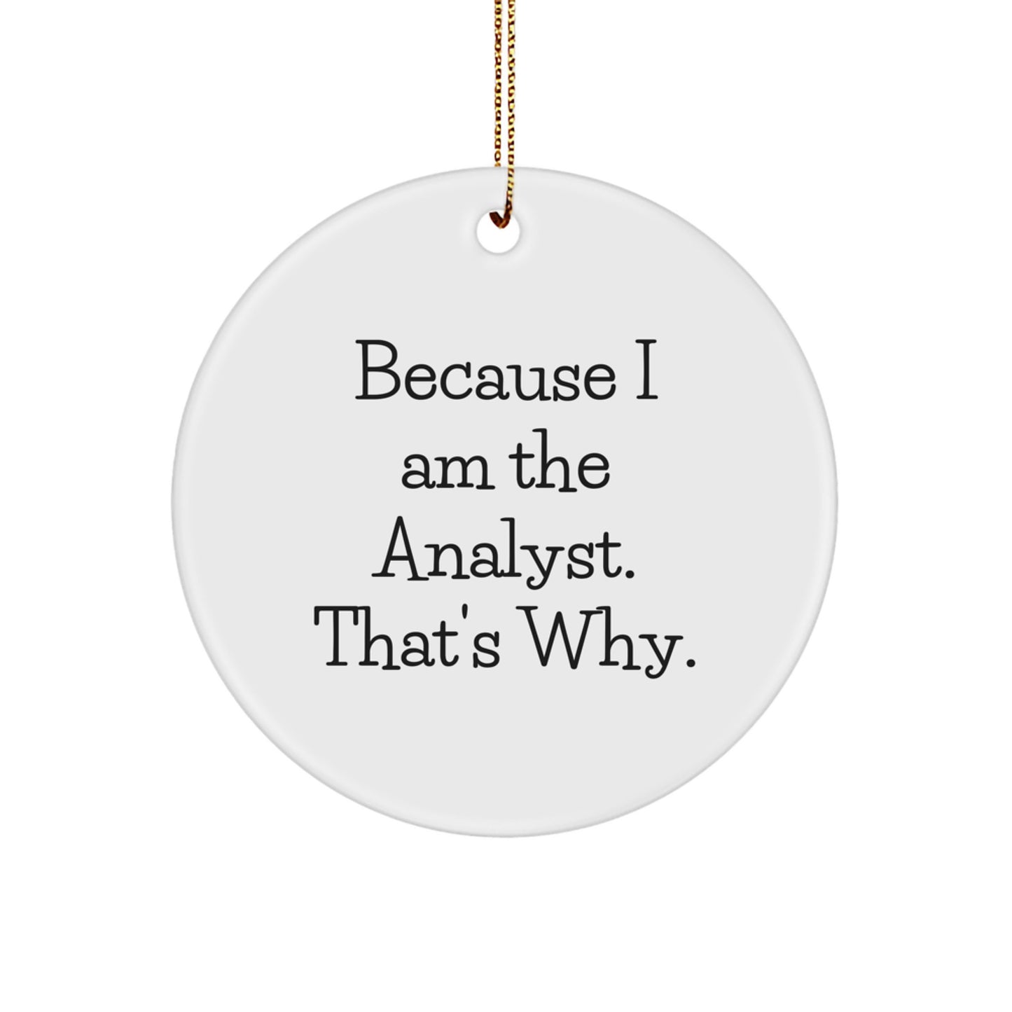 - Don't miss out and make someone's holiday season brighter! Our Funny Analyst Gifts, Because 'I Am The Analyst. That's Why.' Circle Ornament is a fun and thoughtful gift that's sure to bring a smile to their face.