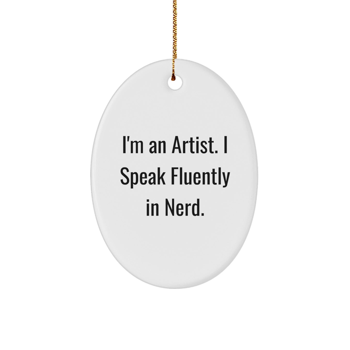 Funny Artist Gifts, 'I'm An Artist. I Speak Fluently In genius.' Oval Ornament for Men, Women, Friends, Coworkers, Family - Christmas Unique Gifts from Friends