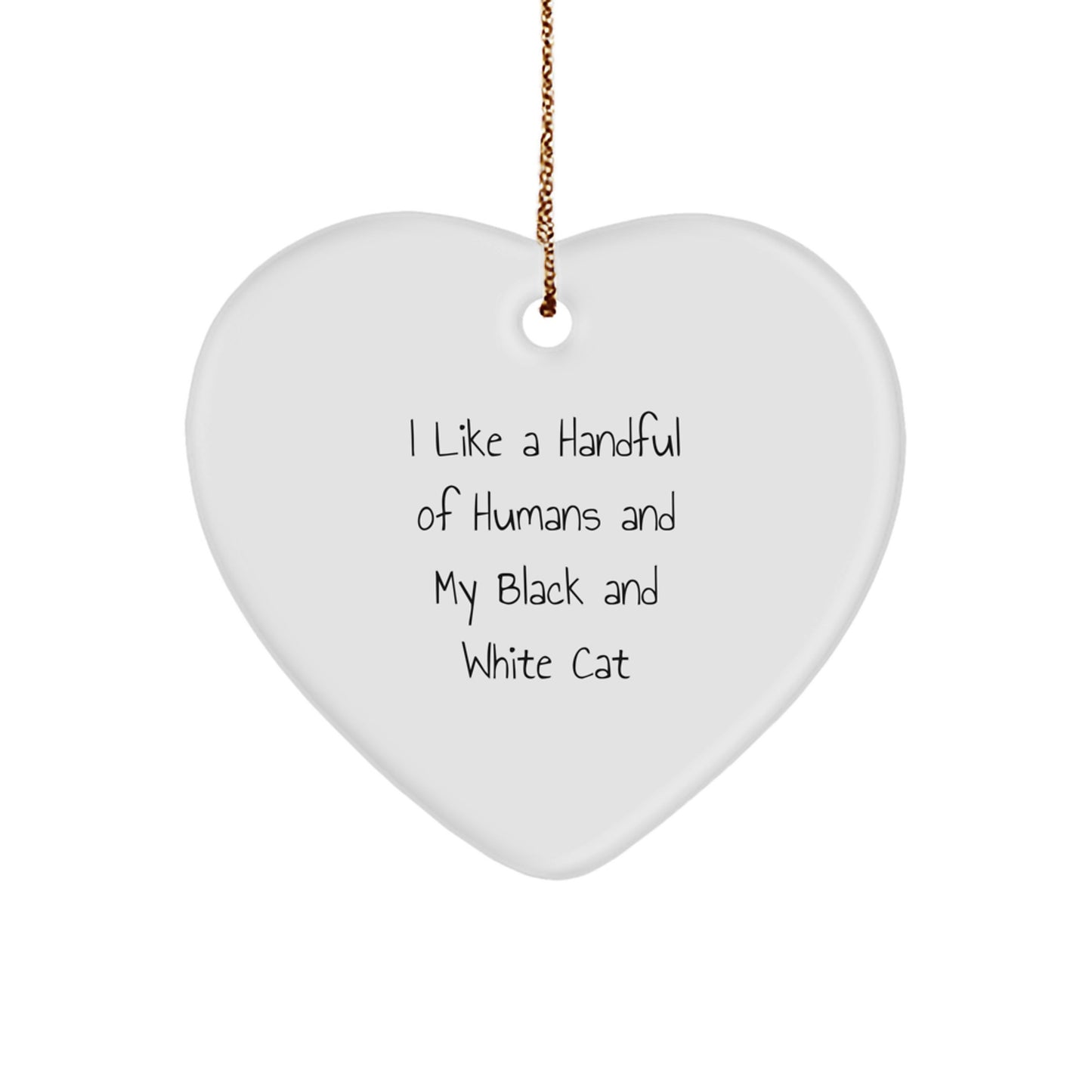 - This lovely Heart Ornament makes a thoughtful gift for friends and family, especially those who love Black and White Cats, with the quote 'I Like A Handful Of Humans And My Black And White Cat' adding a personal touch.
