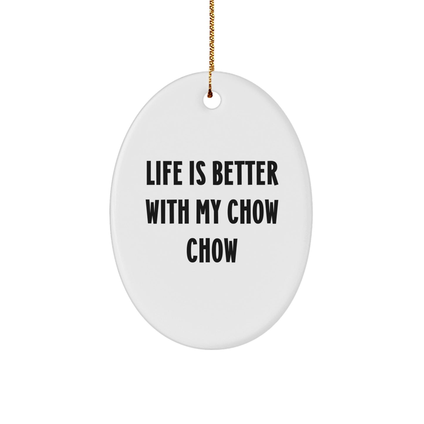 - This funny Oval Ornament is a unique gift for Chow Chow Dog lovers, featuring the quote 'Life Is Better With My Chow Chow' in a beautiful design. It's a heartwarming reminder that will bring a smile to their face every time they see it.