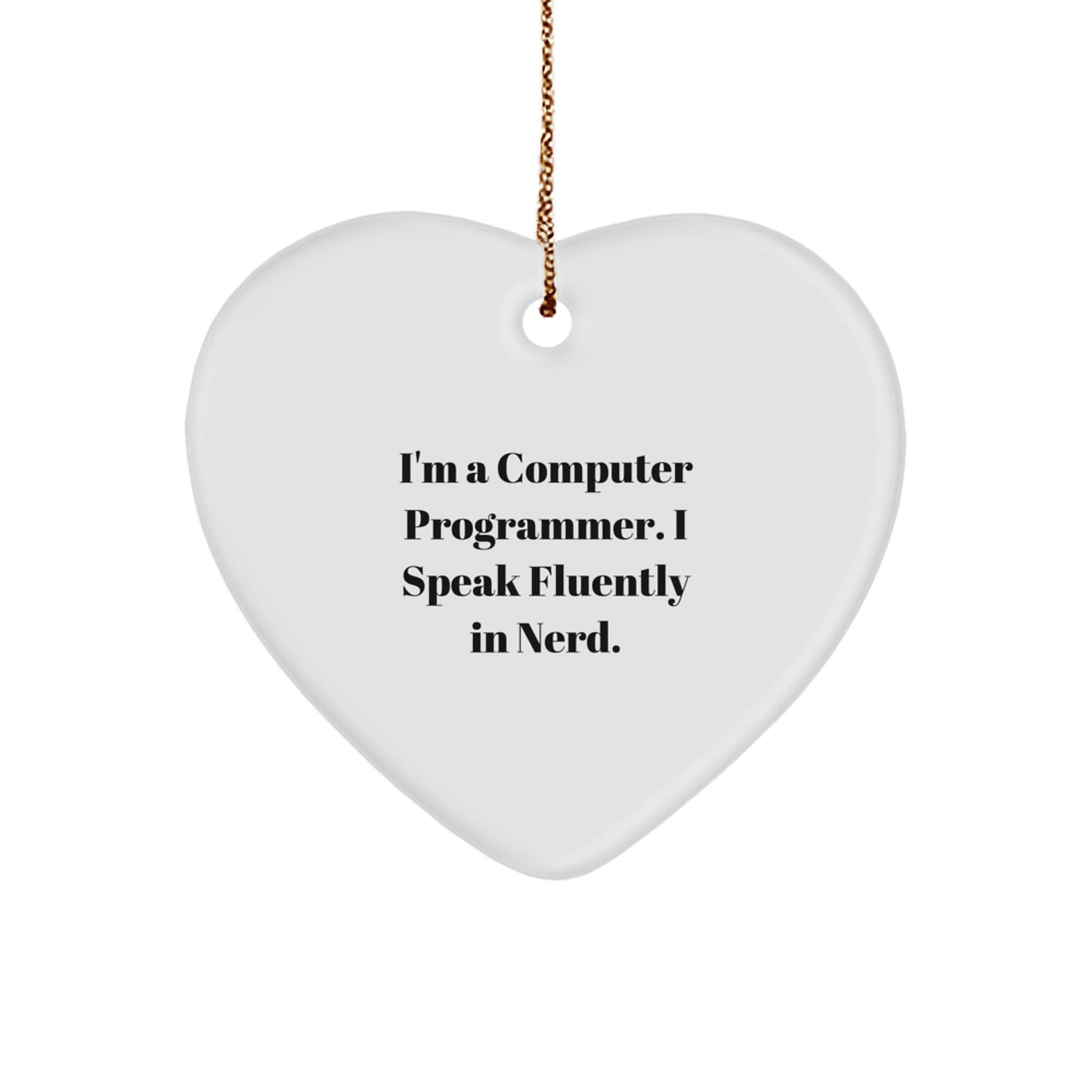 Funny Computer Programmer Heart Ornament Gifts for Men, Women, Coworkers from Friends - 'I'm A Computer Programmer. I Speak Fluently In genius.'