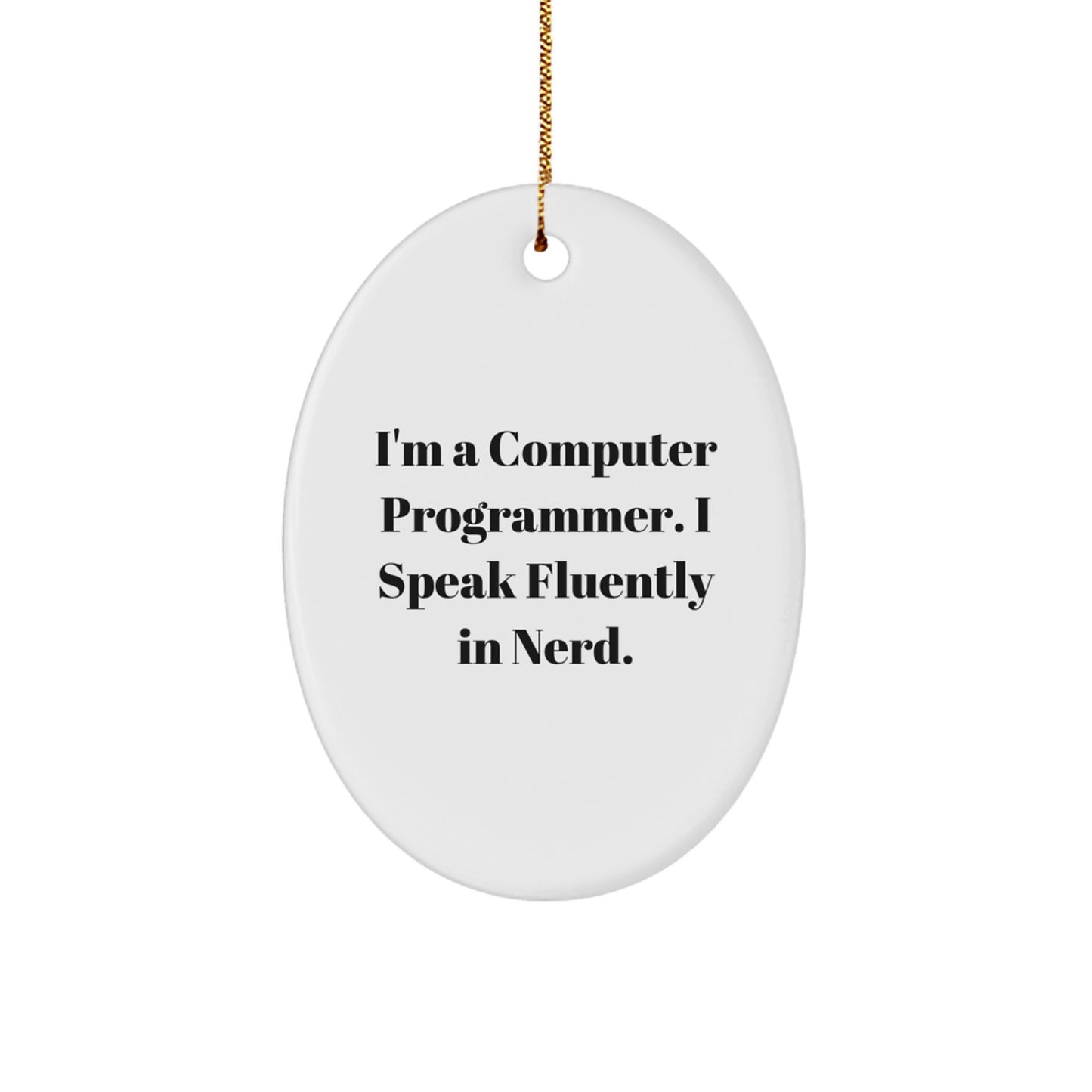 Funny Computer Programmer Oval Ornament Gifts from Friends - 'I'm A Computer Programmer. I Speak Fluently In genius.' - Christmas Unique Gifts for Computer Programmer Men