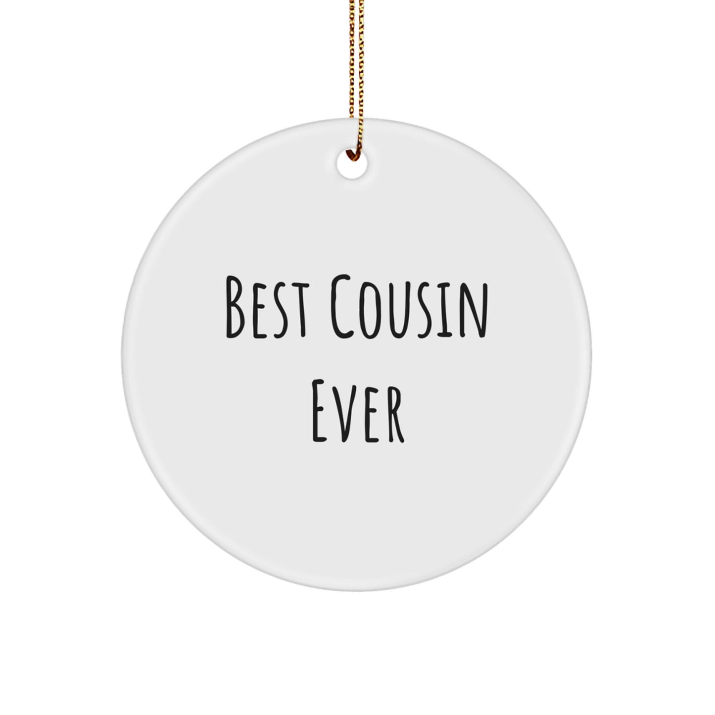 Funny Cousin Gifts: 'Best Cousin Ever' Circle Ornament, White, 2.75" Tall, 0.5 oz, Perfect for Men, Women, or Coworkers, 24K Gold Cord, Christmas