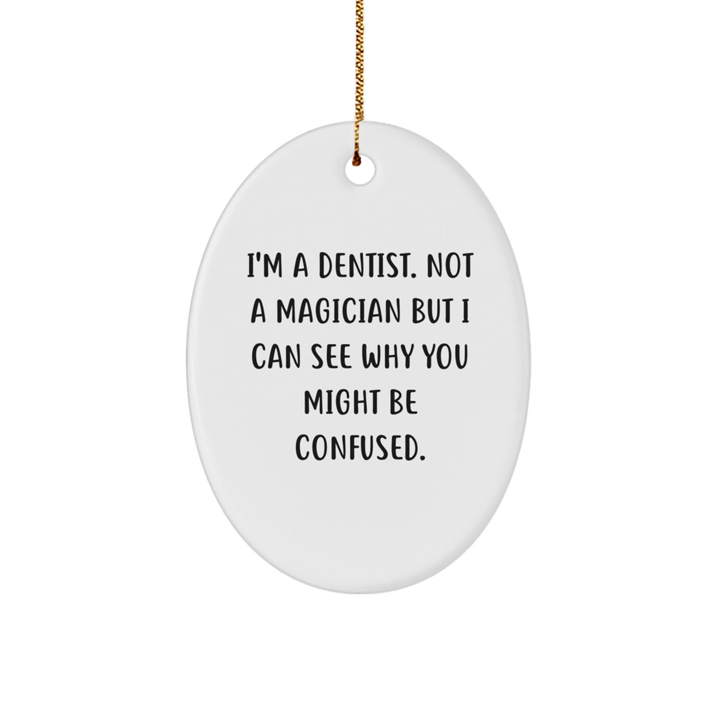 Funny Dentist Gifts from Friends for Dentists I'm A Dentist Not A Magician But I Can See Why You Might Be Confused Christmas Oval Ornament