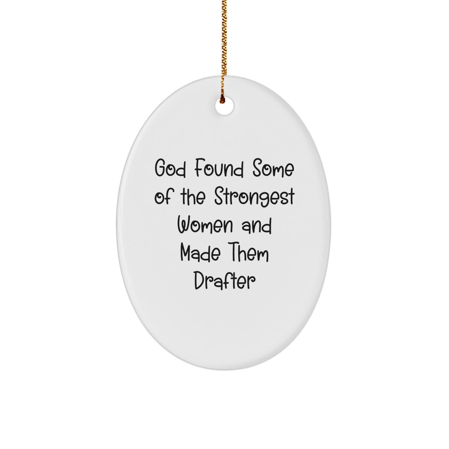 Funny Drafter Gifts from God Found Some Of The Strongest Women And Made Them Drafter, Oval Ornament for Women, Men, or Friends, Christmas Unique Gifts