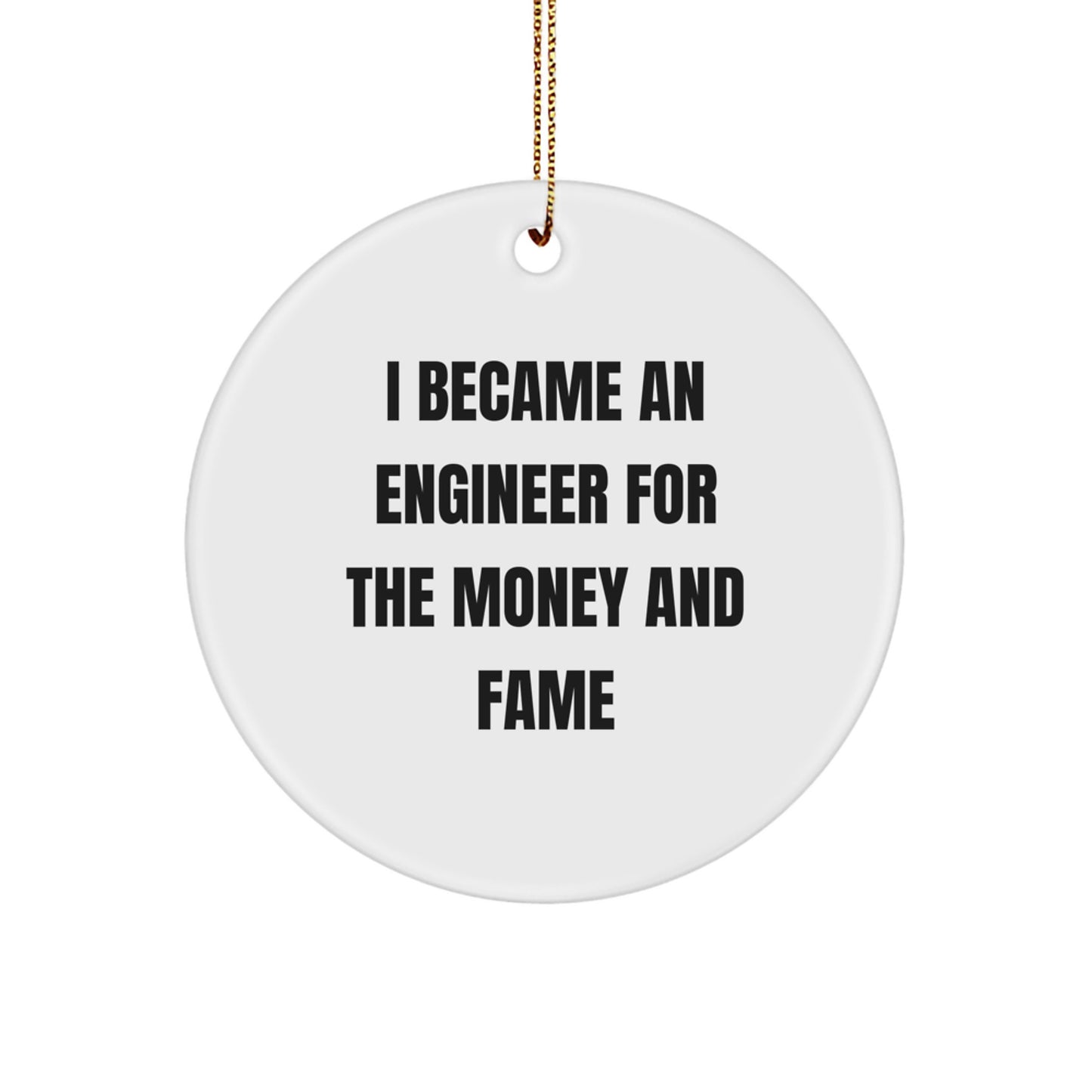 Funny Engineer Gifts for Him, Christmas Unique Circle Ornament, I Became An Engineer For The Money And Fame, Gifts from Men to Friends, Engineer Decorative Ornaments