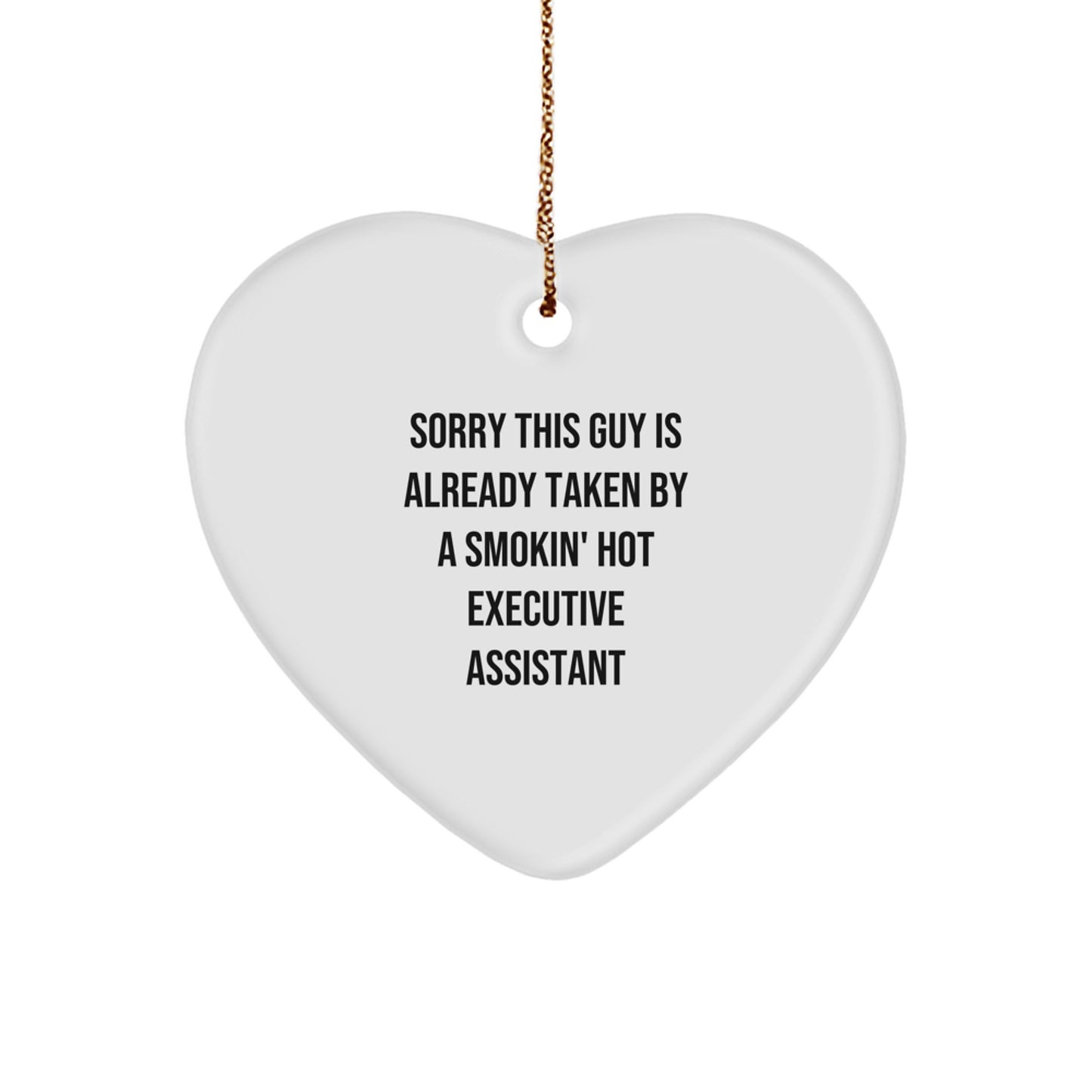 - This Heart Ornament is a unique and thoughtful gift for any Executive Assistant, featuring a vibrant print of the quote 'Sorry This Guy Is Already Taken By A Smokin' Hot Executive Assistant'.