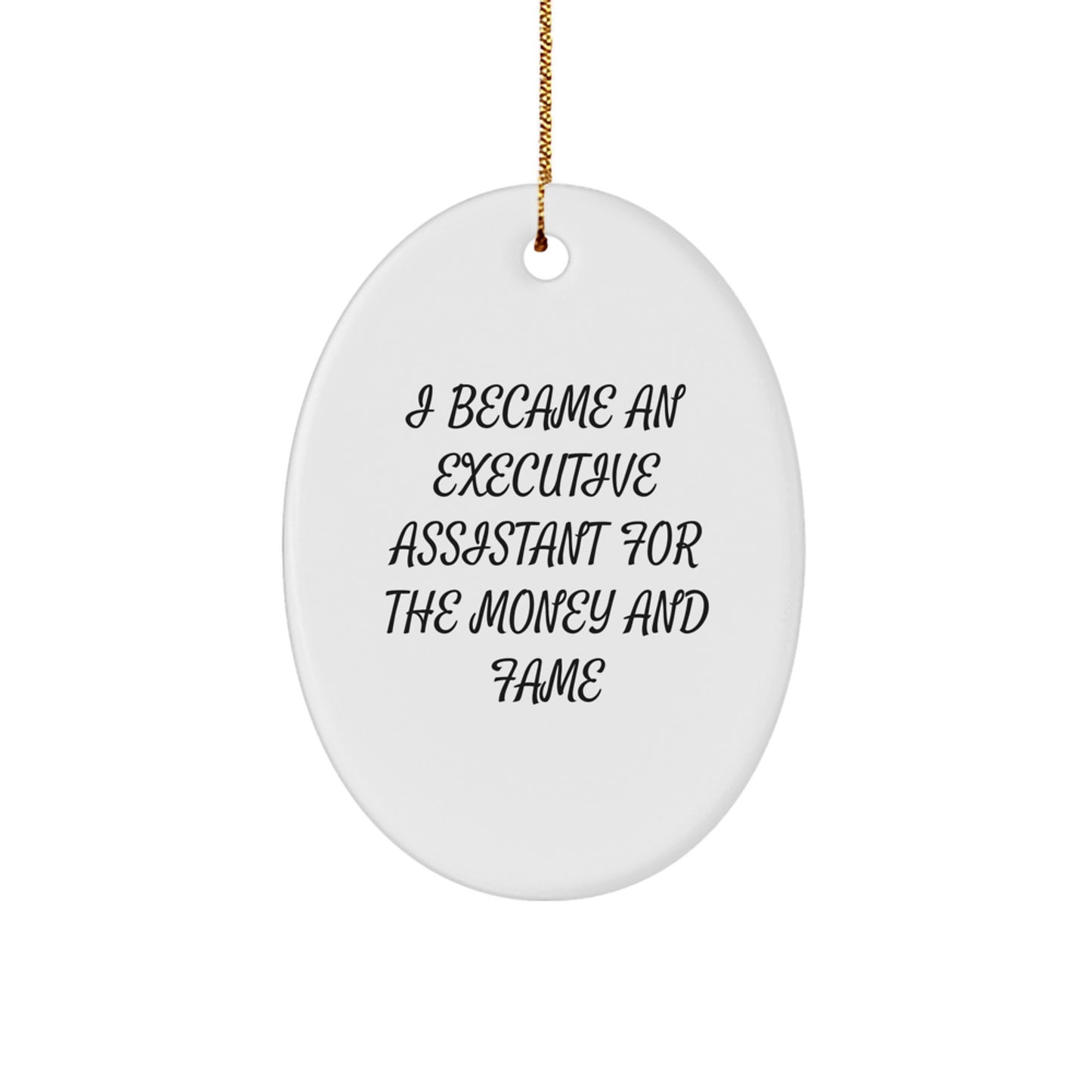 Funny Executive Assistant Oval Ornament Gifts from Coworkers for Executive Assistant - 'I Became An Executive Assistant For The Money And Fame' - Christmas Unique Gifts