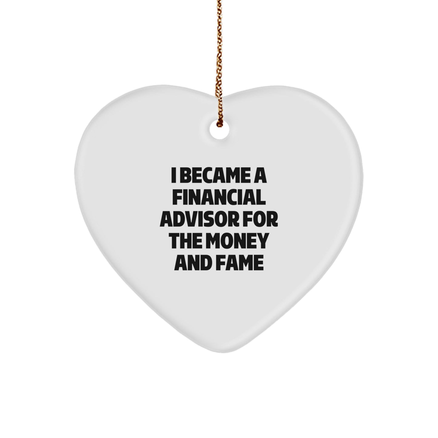 Funny Financial Advisor Gifts from Men to Friends, Heart Ornament I Became A Financial Advisor For The Money And Fame