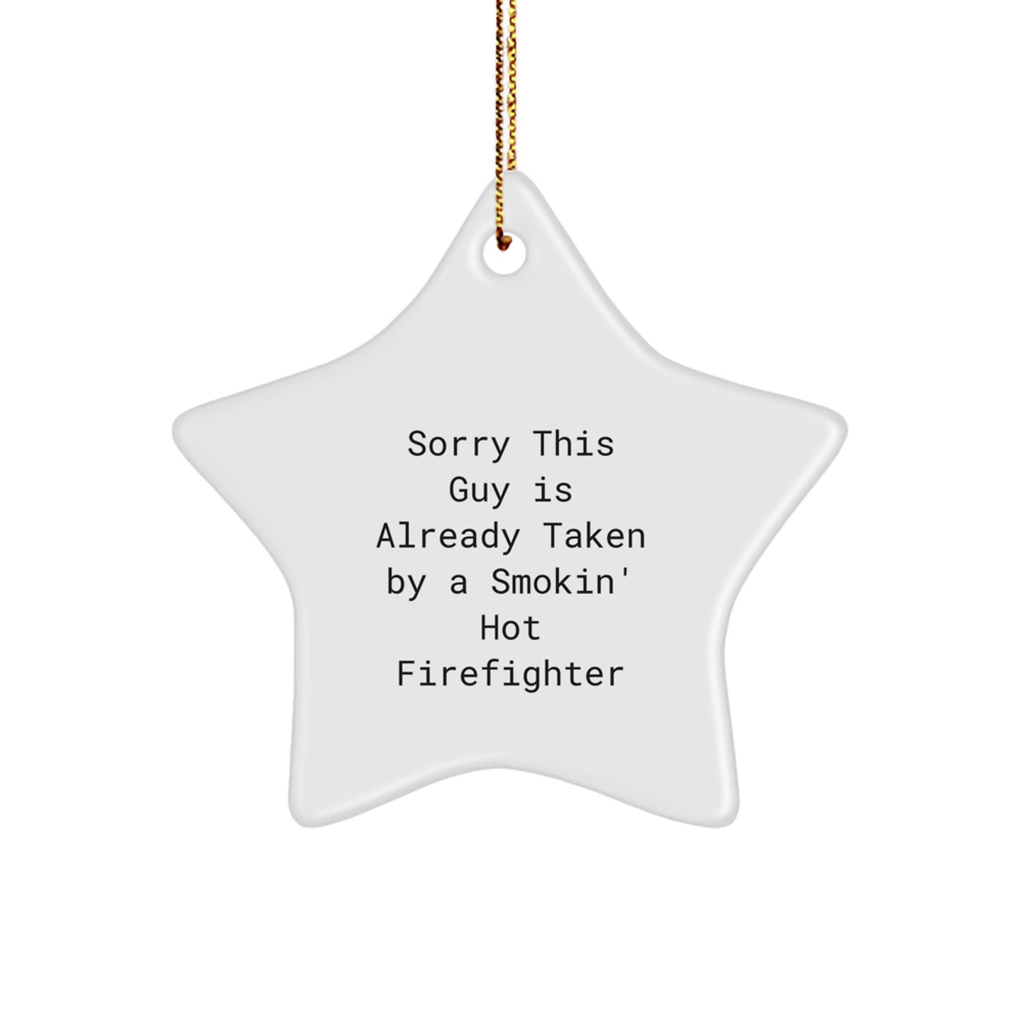Funny Firefighter Gifts from Friends for Men - Sorry This Guy Is Already Taken By A Smokin' Hot Firefighter Star Ornament for Christmas
