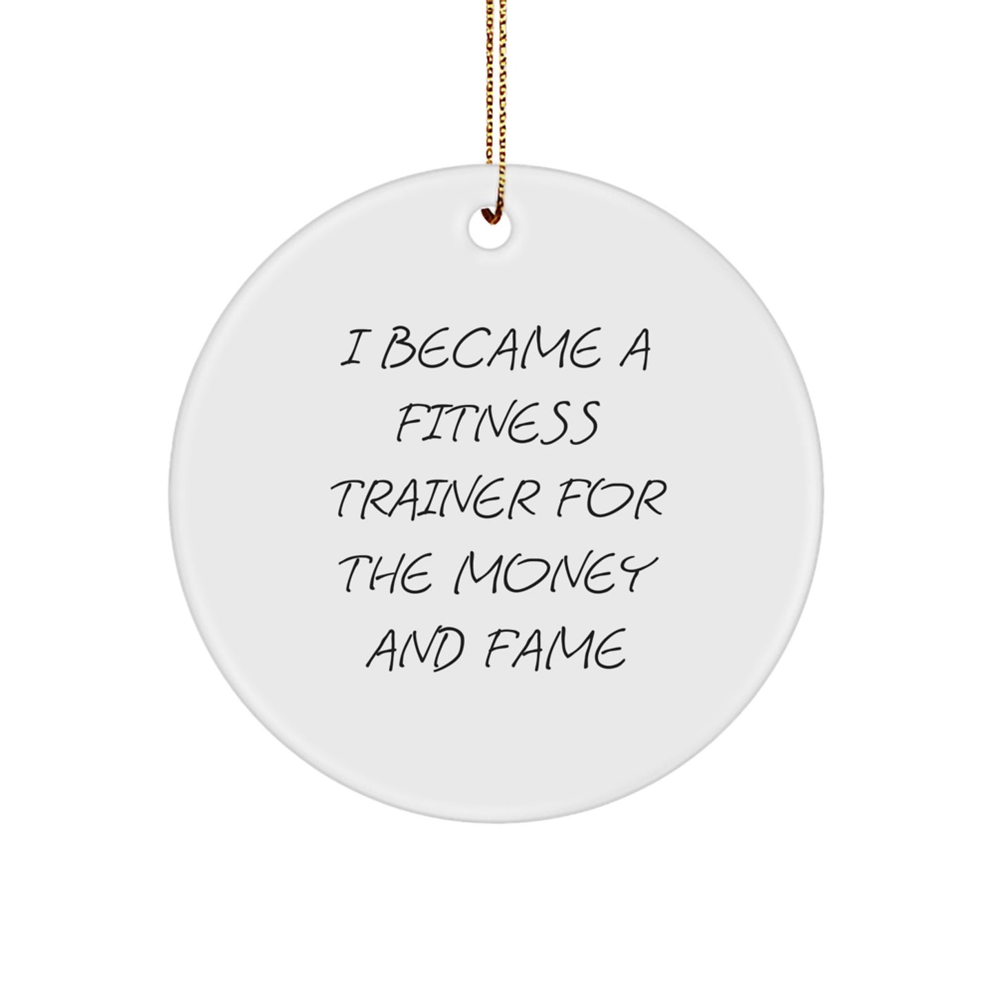 - Give the gift of motivation and inspiration with our Funny Fitness Trainer Gifts for Him. The Circle Ornament features the quote 'I Became A Fitness Trainer For The Money And Fame' and is crafted from sturdy MDF with a vibrant, high-gloss finish.