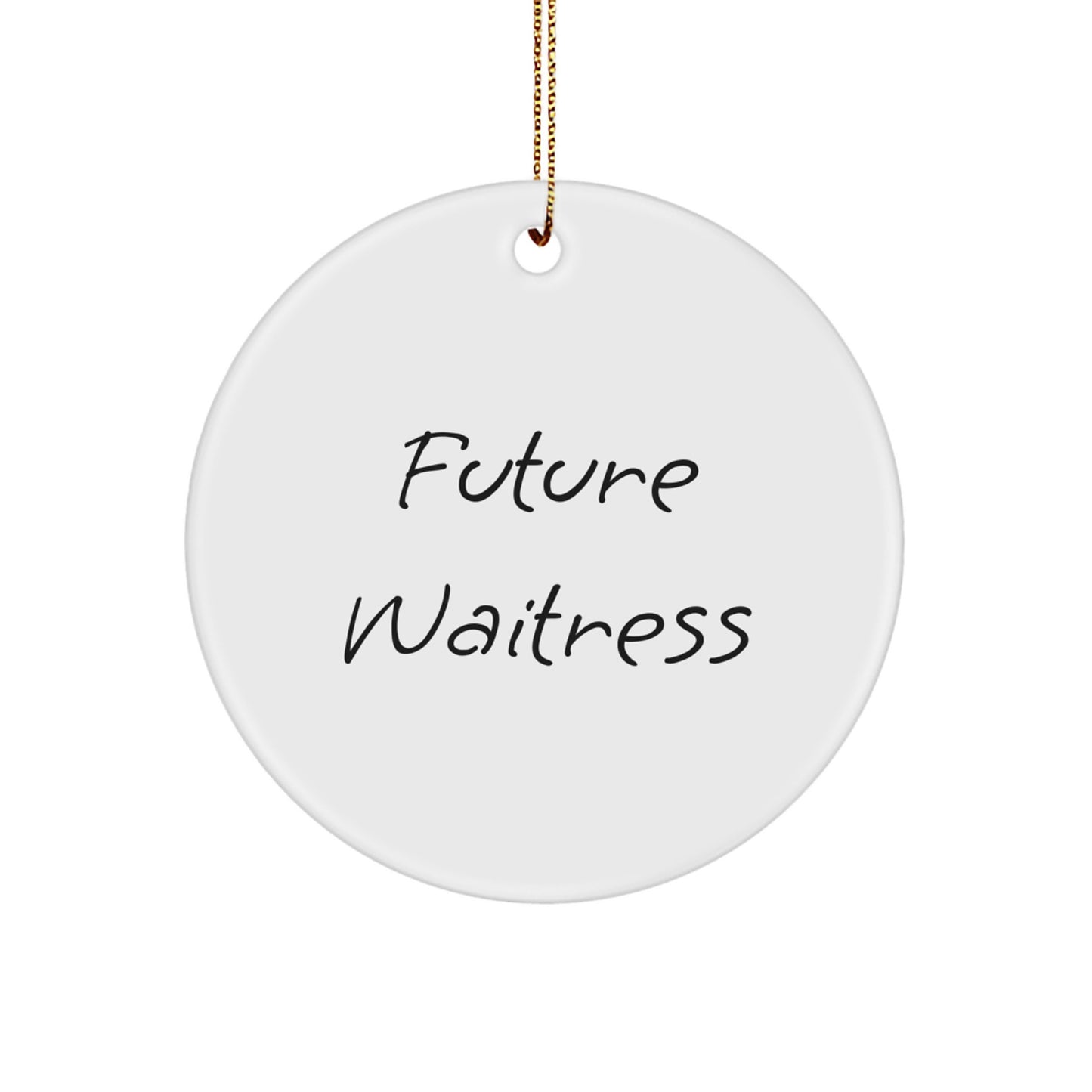- Give the gift of encouragement and support to a future waitress with this unique and humorous circle ornament. Don't miss out and make their holiday season one to remember!