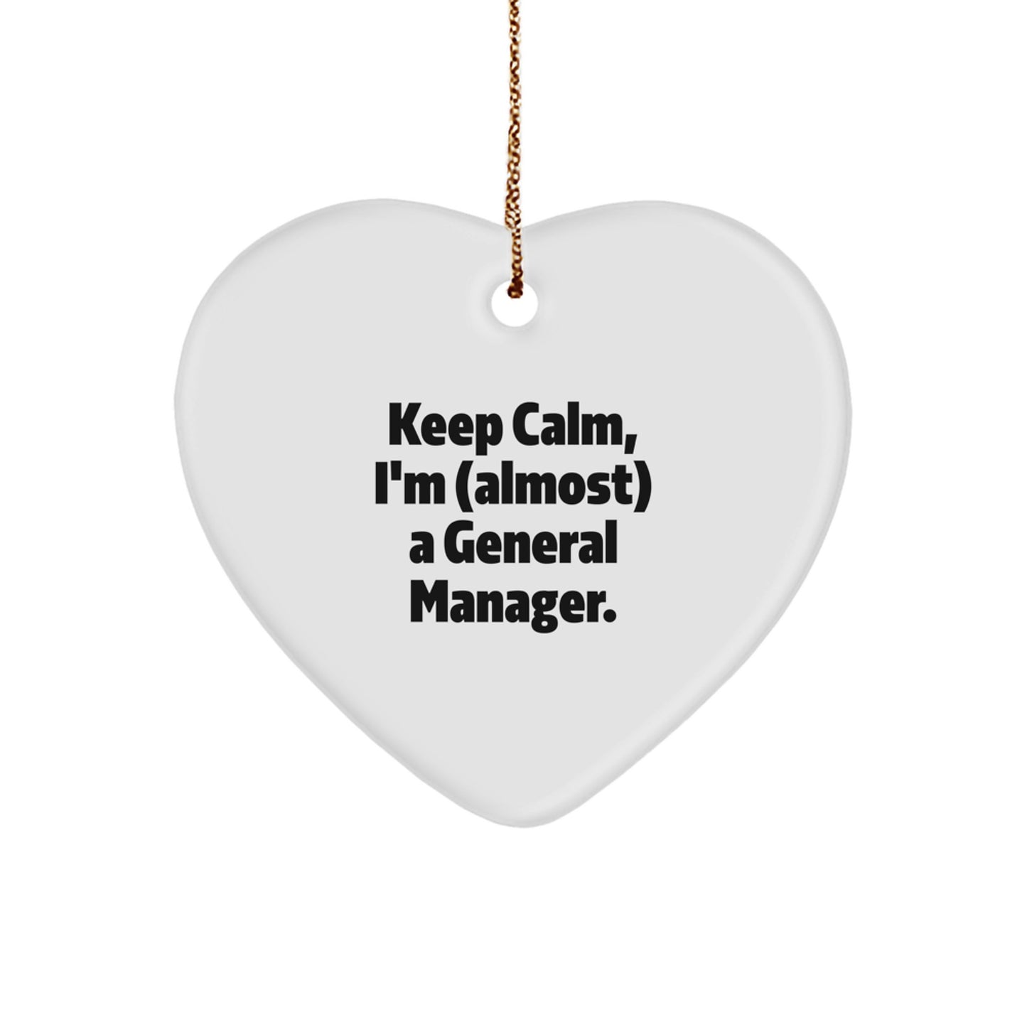 - This Funny General Manager Gifts, Heart Ornament, 'Keep Calm, I'm (almost) A General Manager', is a unique and thoughtful gift for General Managers, making it a great addition to any office or home decor.