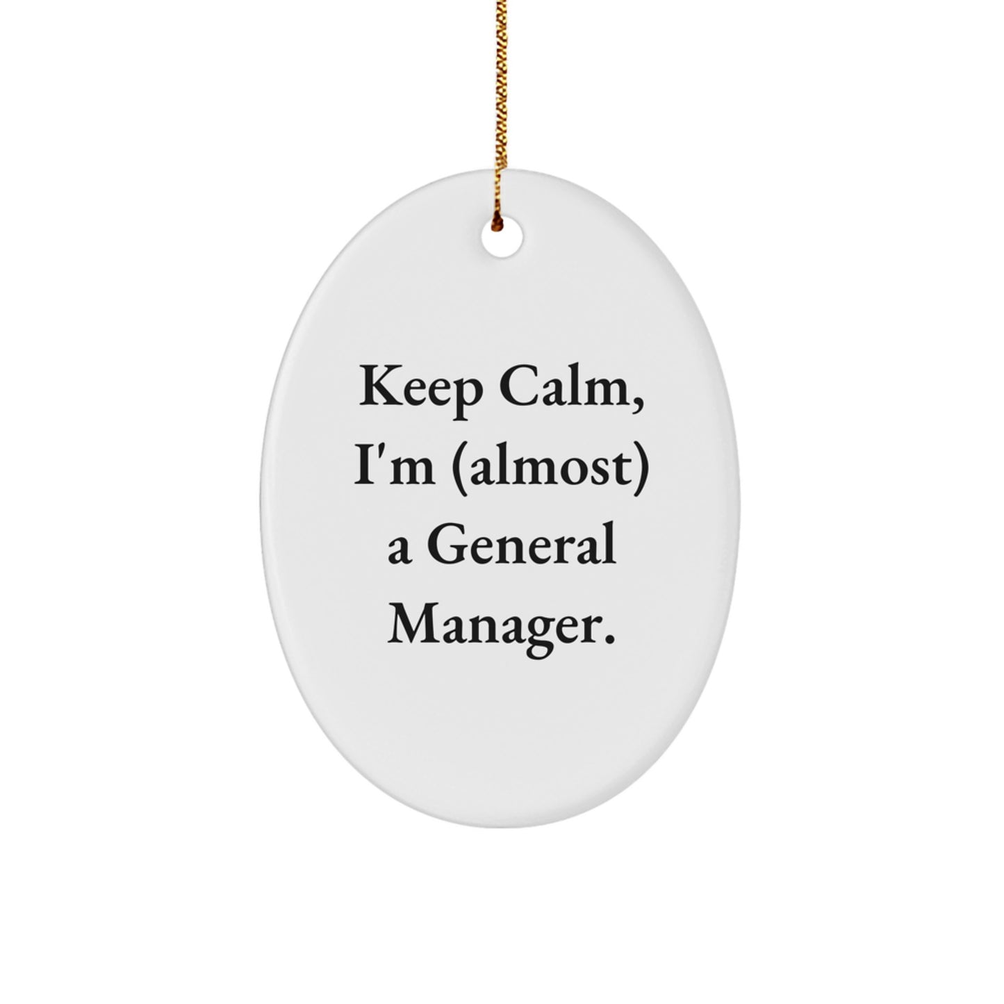 Funny General Manager Oval Ornament Gifts from Family for Christmas Unique Decorations - Keep Calm I'm (almost) A General Manager
