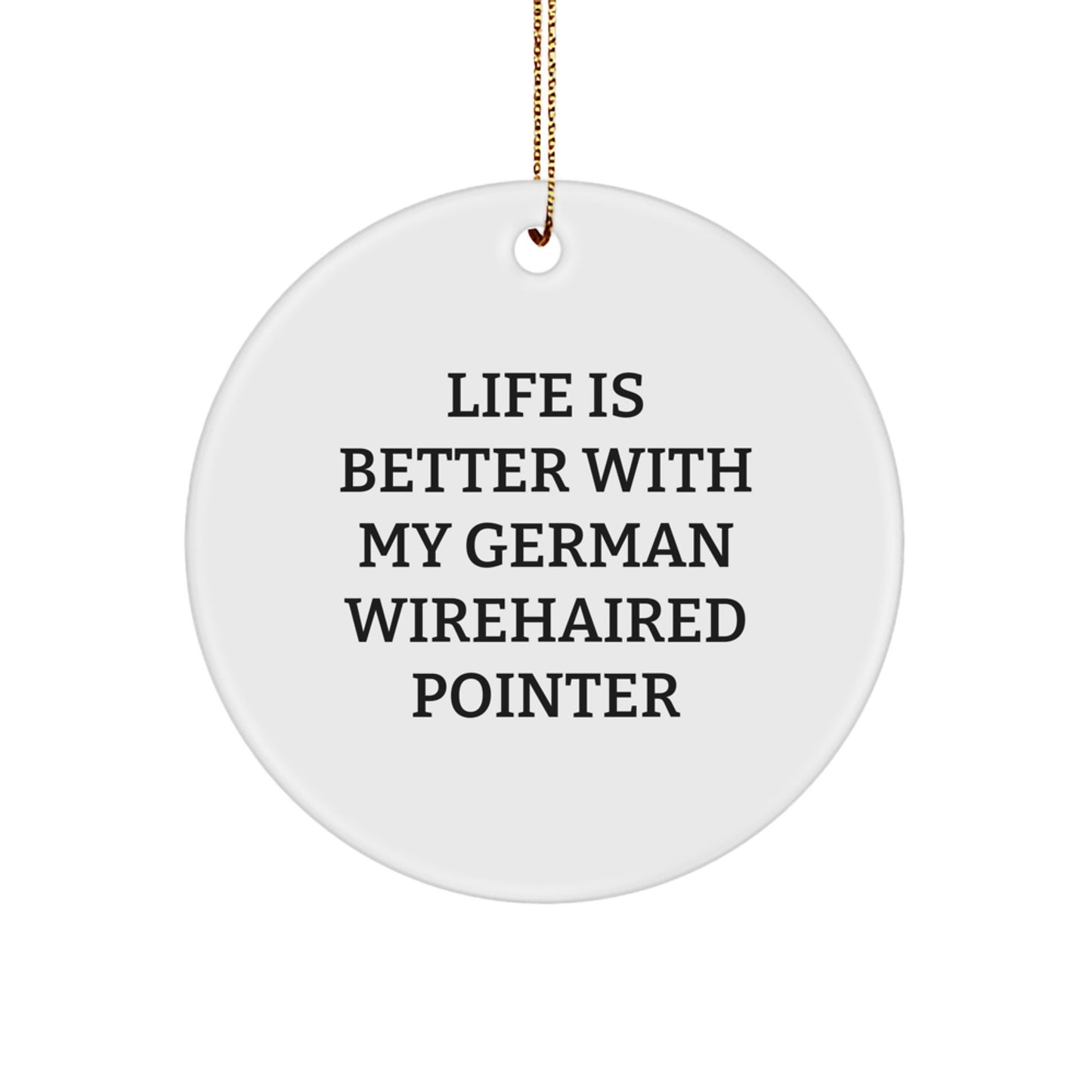 Funny German Wirehaired Pointer Dog Gifts from Men to Friends - Life Is Better With My German Wirehaired Pointer Christmas Unique Circle Ornament for German Wirehaired Pointer Dog Lovers
