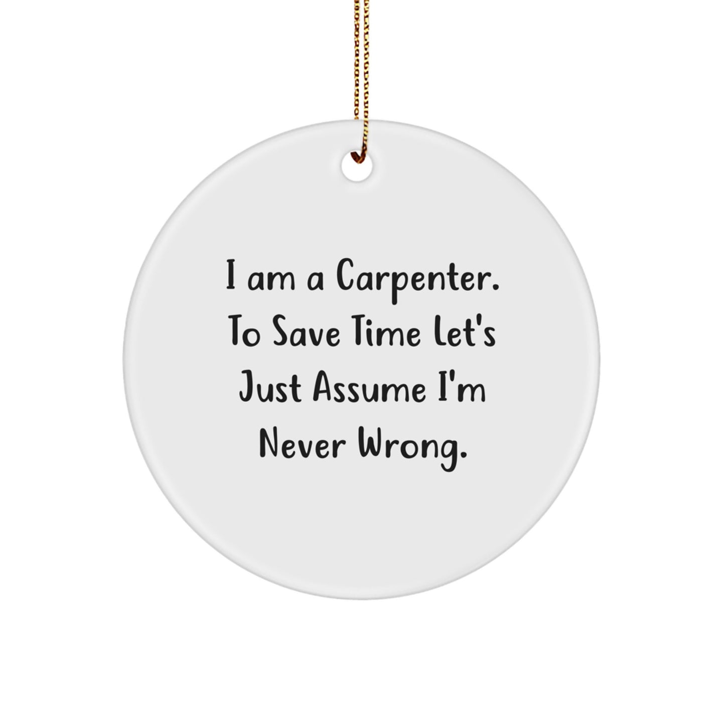 Funny Gifts from Friends for Carpenter Christmas Unique Circle Ornaments with 'I Am A Carpenter. To Save Time Let's Just Assume I'm Never Wrong.' Quote