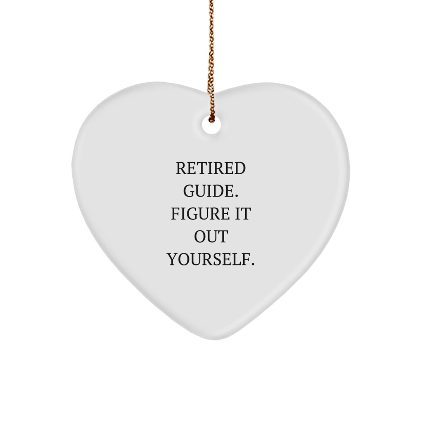 - Make a thoughtful gift for Guides with this unique Heart Ornament, featuring a funny quote that says 'Retired Guide. Figure It Out Yourself.'