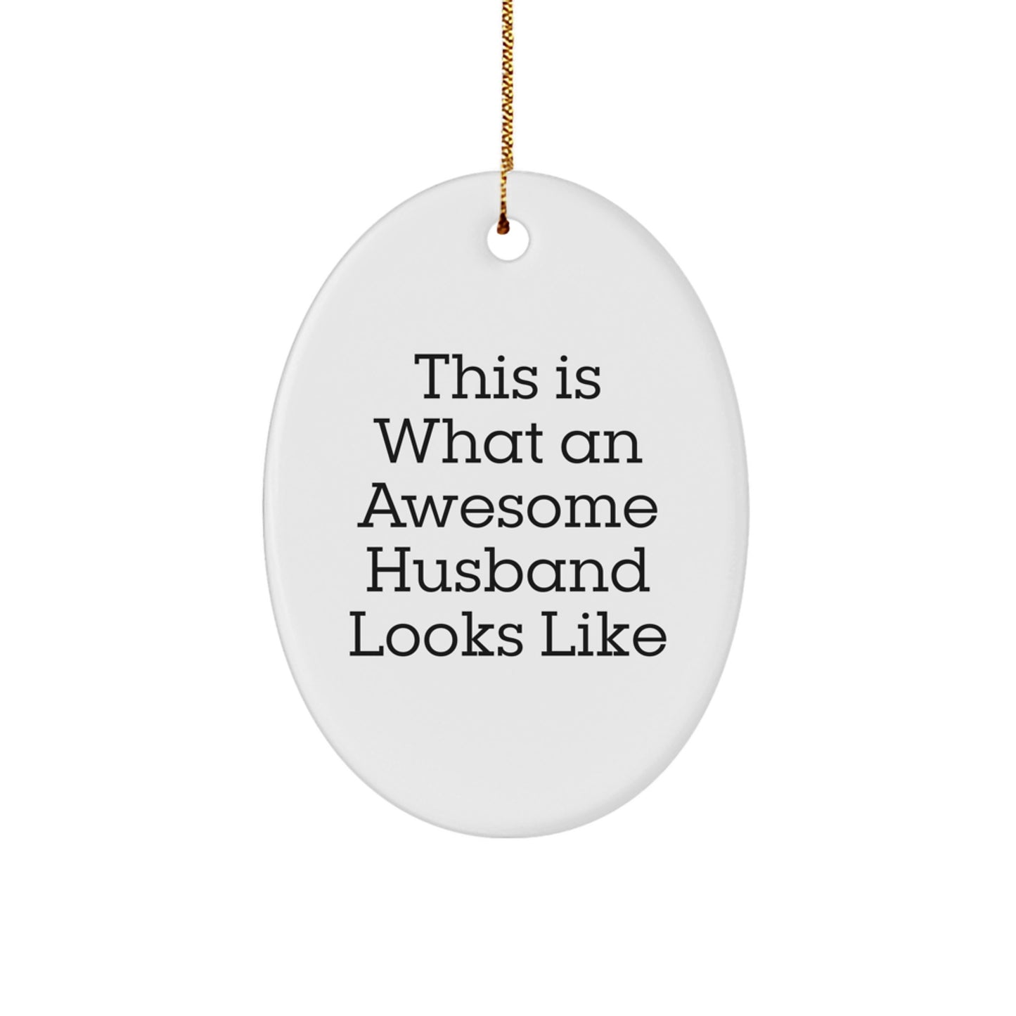 - This funny oval ornament is the perfect way to show your husband how much you appreciate him, with the quote 'This Is What An Awesome Husband Looks Like' featuring prominently on the front.