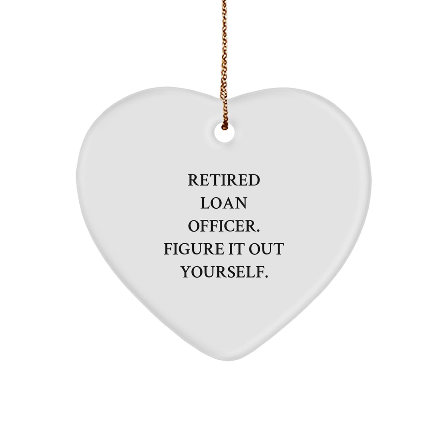 Funny Loan Officer Gift, Heart Ornament, 'Retired Loan Officer. Figure It Out Yourself.' - Gifts from Men to Loan Officer for Christmas