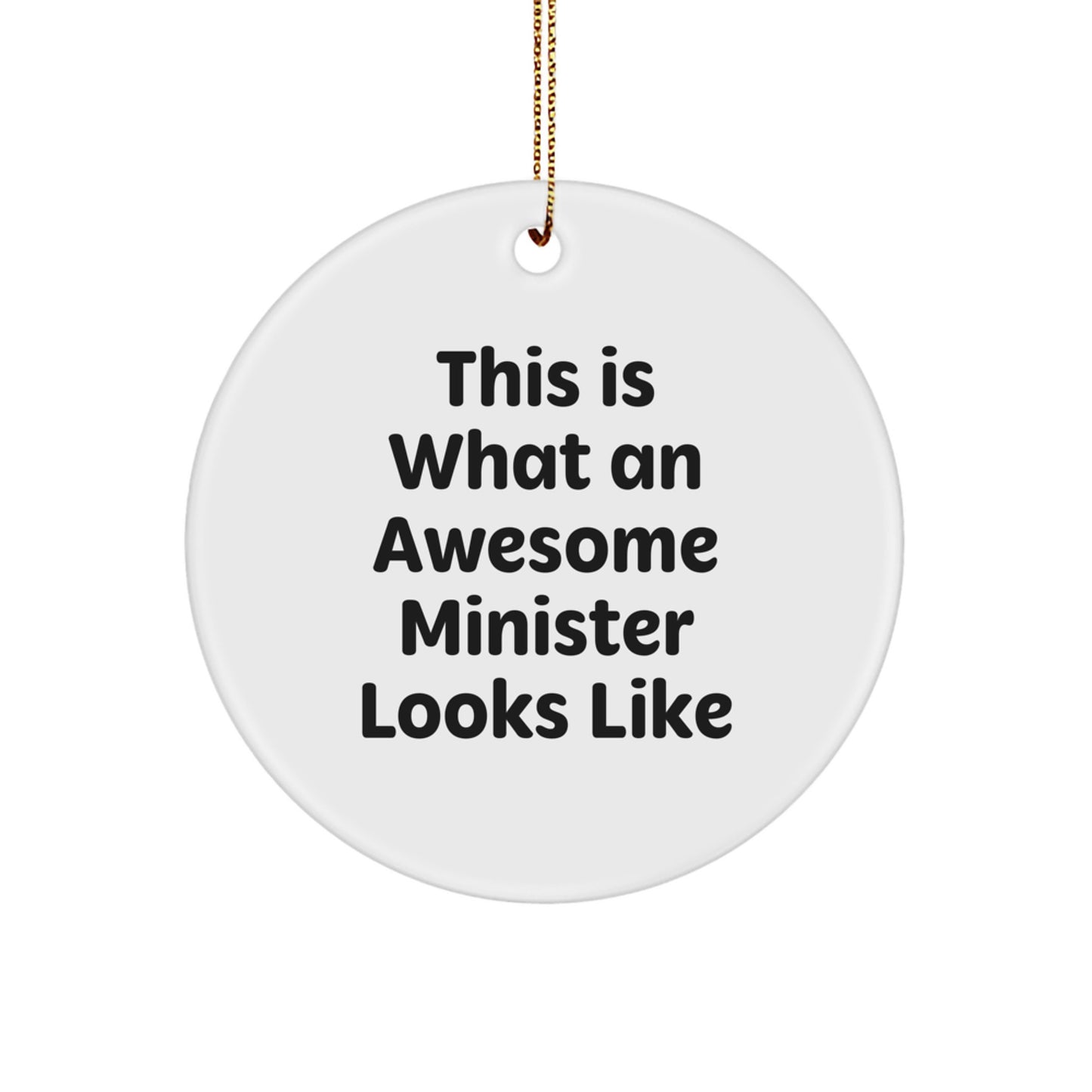 Funny Minister Gifts - Circle Ornament with 'This Is What An Awesome Minister Looks Like' Quote, White, 2.75" Tall, Gifts from Men to Minister, Unique Christmas Unique Gifts for Minister