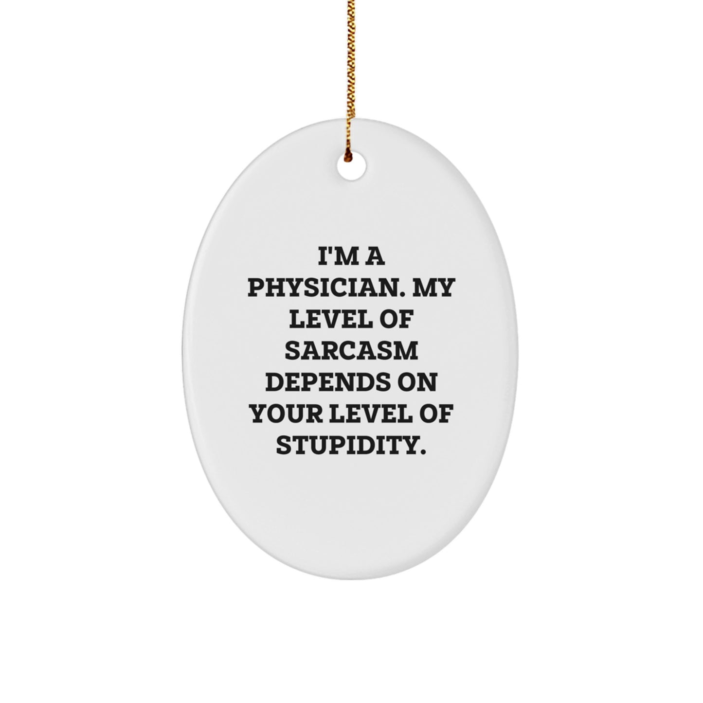 - Our Funny Physician Oval Ornament is a unique and thoughtful gift for any Physician. Its vibrant design and sarcastic quote make it a great conversation starter. The Oval Ornament is crafted from sturdy MDF with a high-gloss plastic finish, ensuring long-lasting designs.