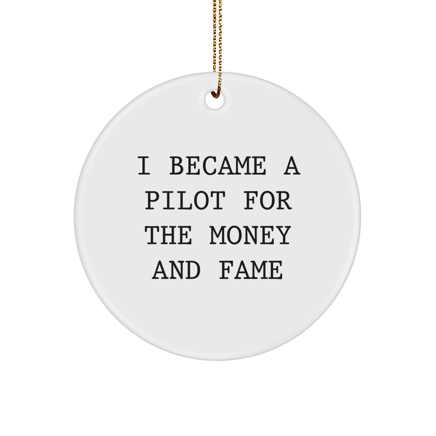 Featuring the quote 'I Became A Pilot For The Money And Fame', this Pilot Circle Ornament is a thought-provoking gift that's sure to spark interesting conversations. The sturdy MDF material and high-gloss plastic finish ensure a long-lasting design that will withstand the test of time.