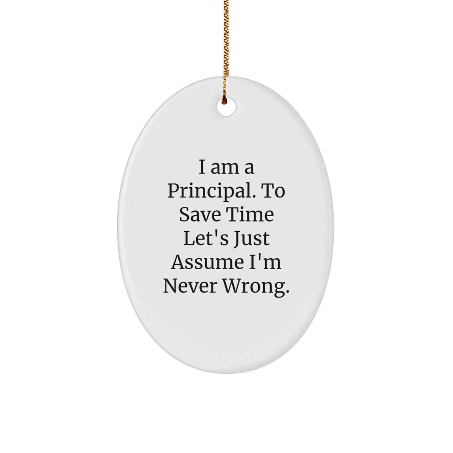 Funny Principal Gift, 'I Am A Principal. To Save Time Let's Just Assume I'm Never Wrong.' Oval Ornament for Christmas, Gifts from Friends to Family