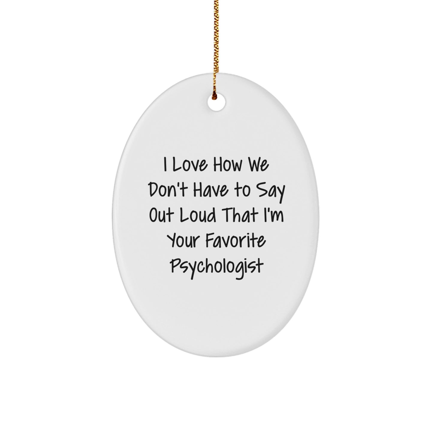 Are you looking for a unique gift for your favorite Psychologist? Look no further! This Oval Ornament is the perfect way to show your appreciation for their hard work and dedication. The quote 'I Love How We Don't Have To Say Out Loud That I'm Your Favorite' is funny and relatable, making it a great choice for any Psychologist enthusiast.