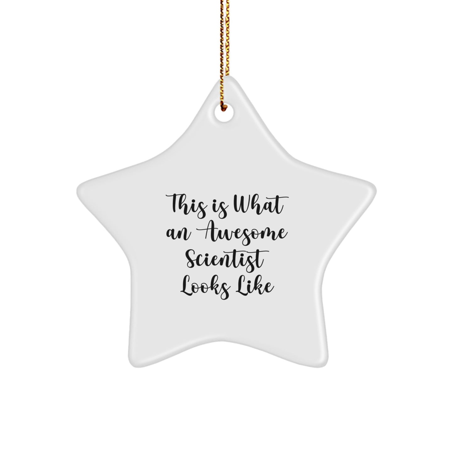 Funny Scientist Gifts from Friends for Christmas - This Is What An Awesome Star Ornament Looks Like, White Star Shaped, Durable MDF, High-Gloss Finish