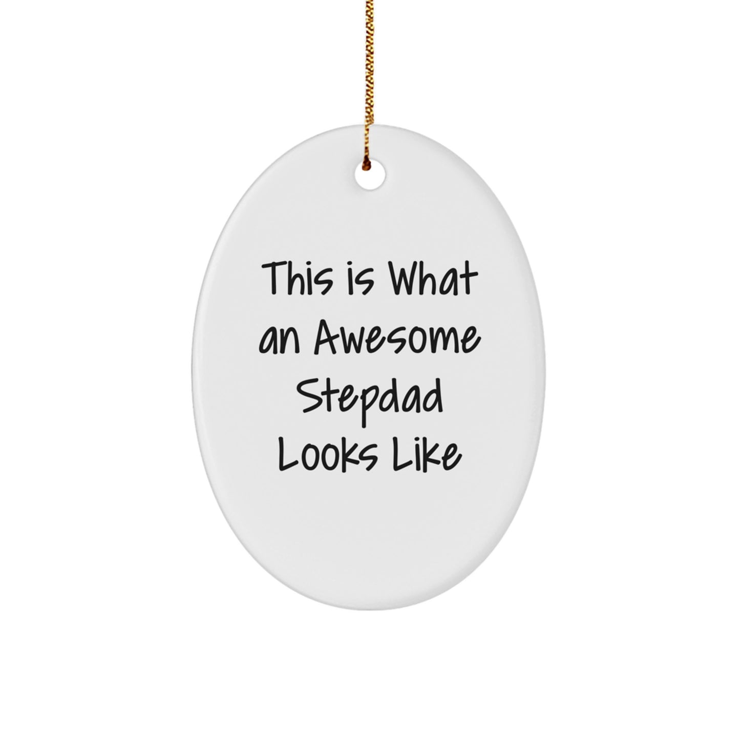 Funny Stepdad Gifts for Men, 'This Is What An Awesome Stepdad Looks Like' Oval Ornament, White, Perfect for Christmas Unique Gifts from Family, Friends, or Coworkers