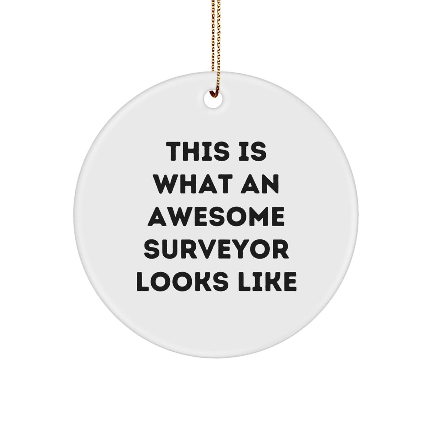 This is the ideal gift for Surveyor enthusiasts or anyone who loves the outdoors! Our 'This Is What An Awesome Surveyor Looks Like' Circle Ornament is a unique and thoughtful present for friends and family. Made from sturdy MDF with a high-gloss plastic finish, this Circle Ornament is vibrantly printed and lightweight, making it easy to hang and a great choice for households with children or pets. Whether you're a seasoned Surveyor or just starting out, this ornament is a fun way to celebrate your love of Surveyor.
