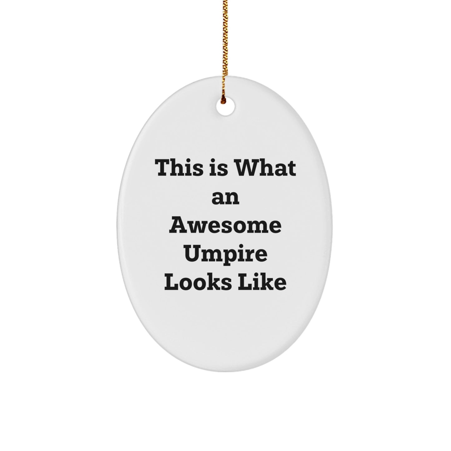 - Our oval ornament is a unique and thoughtful gift for any umpire, featuring the quote 'This Is What An Awesome Umpire Looks Like' in a funny and playful way.