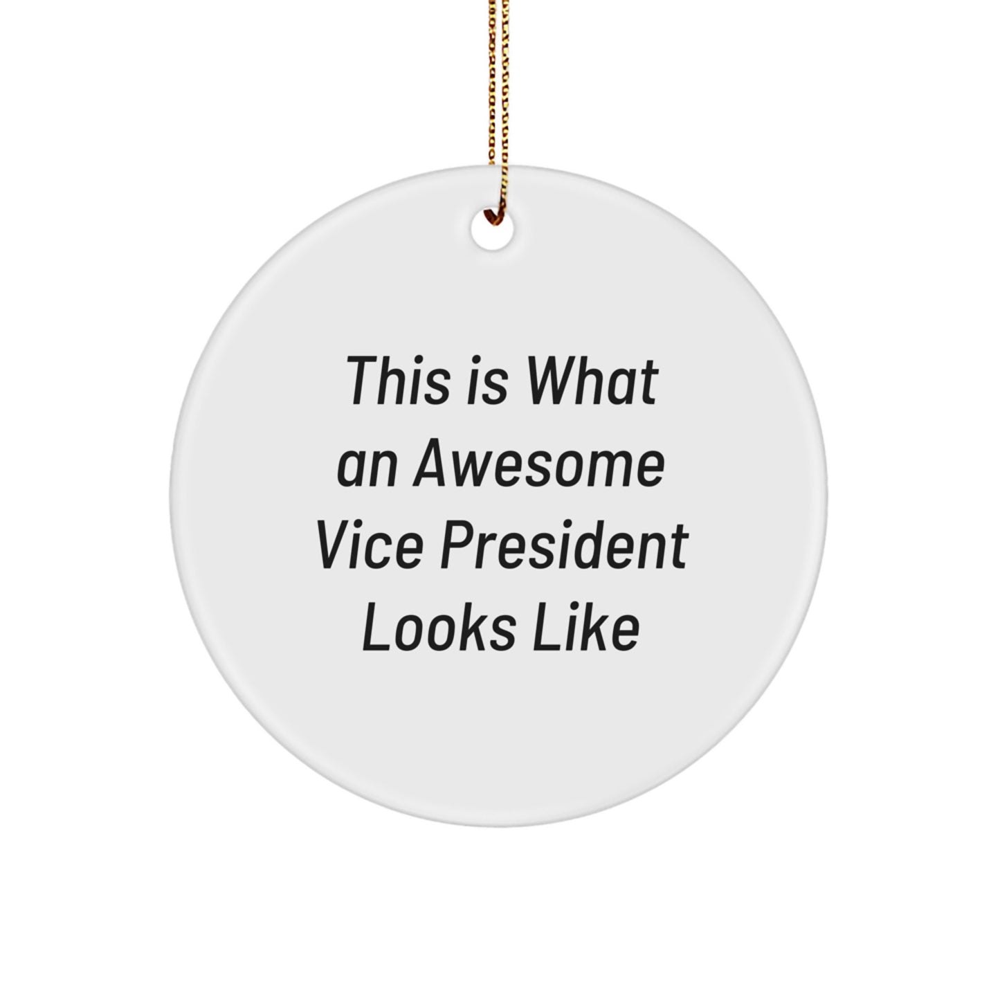 - 'This Is What An Awesome Vice President Looks Like' embodies the spirit of leadership and excellence, and now you can proudly display it on your Christmas tree with our 'Vice President' Circle Ornament. Made from durable MDF with a high-gloss plastic finish, this beautifully crafted ornament is designed to withstand the test of time and will remain a cherished keepsake for years to come. Its vibrant colors and unique design make it a standout on any Christmas tree or mantle.