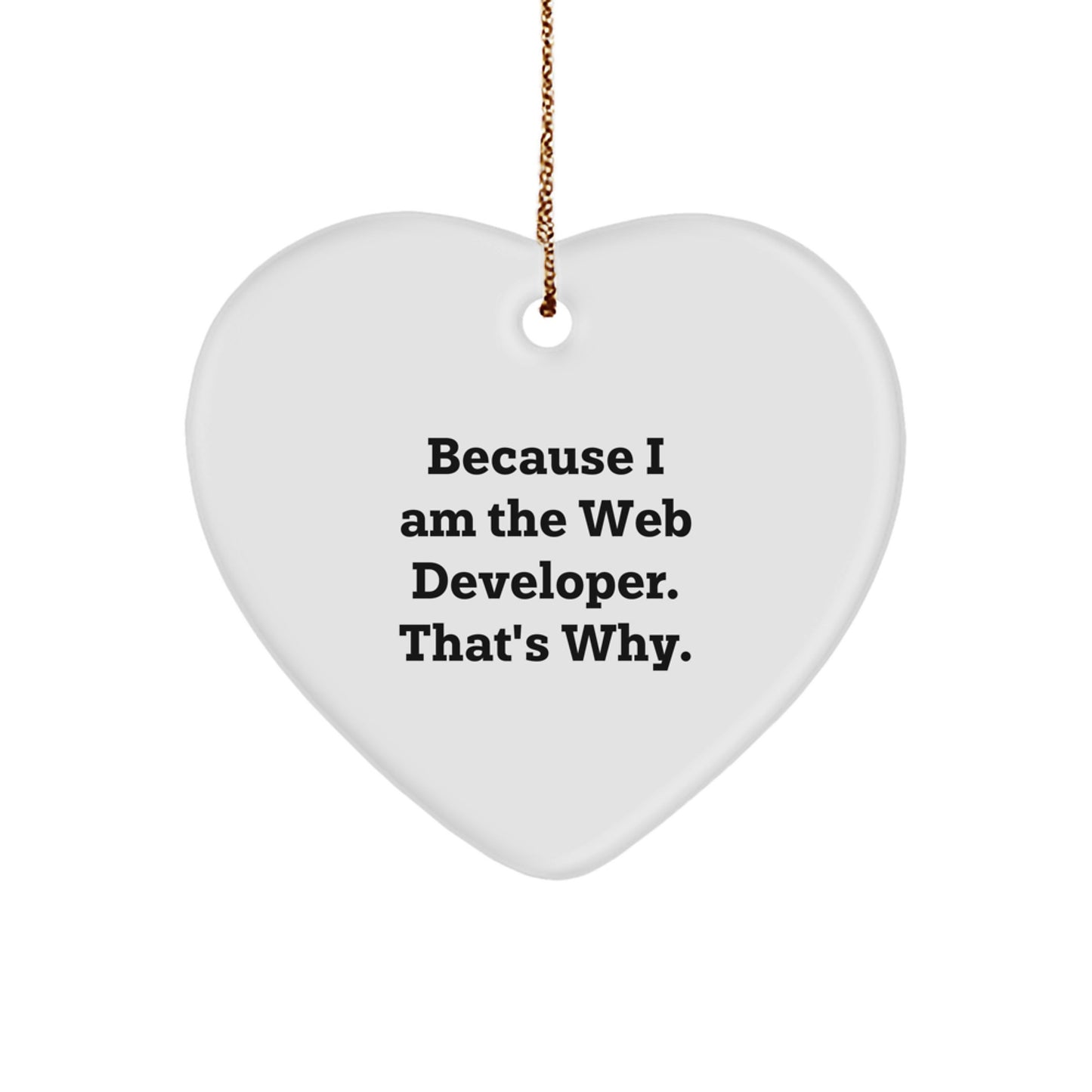 - This heart-shaped ornament is the ideal gift for web developers, tech enthusiasts, and anyone who loves coding. The quote 'Because I Am The Web Developer. That's Why' is funny, relatable, and shows that you pay attention to their interests. It's a great way to express your feelings and appreciation for the web developer in your life.