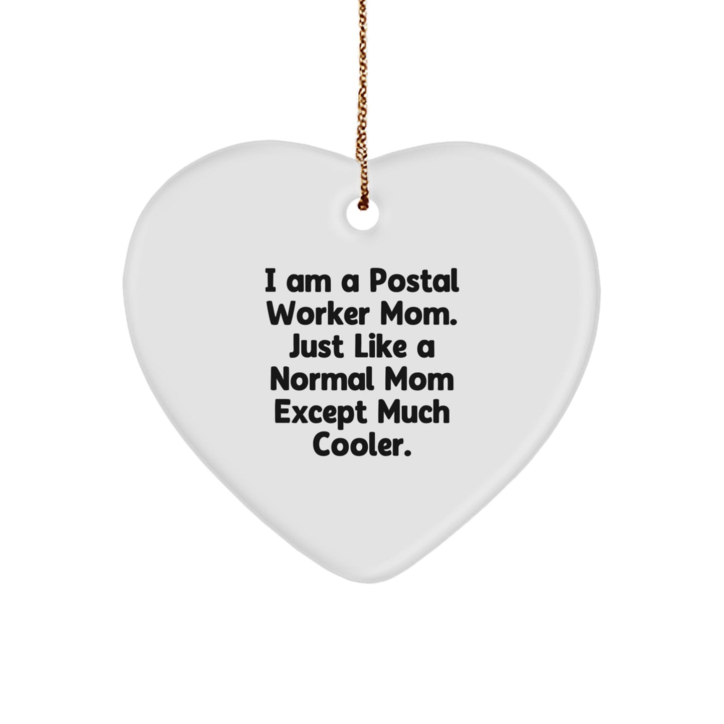 - Get your 'Just Like A Normal Mom Except Much Cooler' heart ornament today and give the gift of laughter and joy to the postal worker in your life. Perfect for Christmas or any other occasion, this ornament is a great way to show your appreciation and add some personality to your home or office.