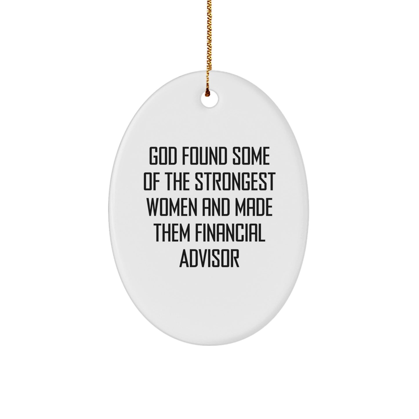 - Get your 'God Found Some Of The Strongest Women And Made Them Financial Advisor' Oval Ornament today and make it a Christmas to remember! Treat yourself, your loved ones, or your colleagues to this unique and thoughtful gift.