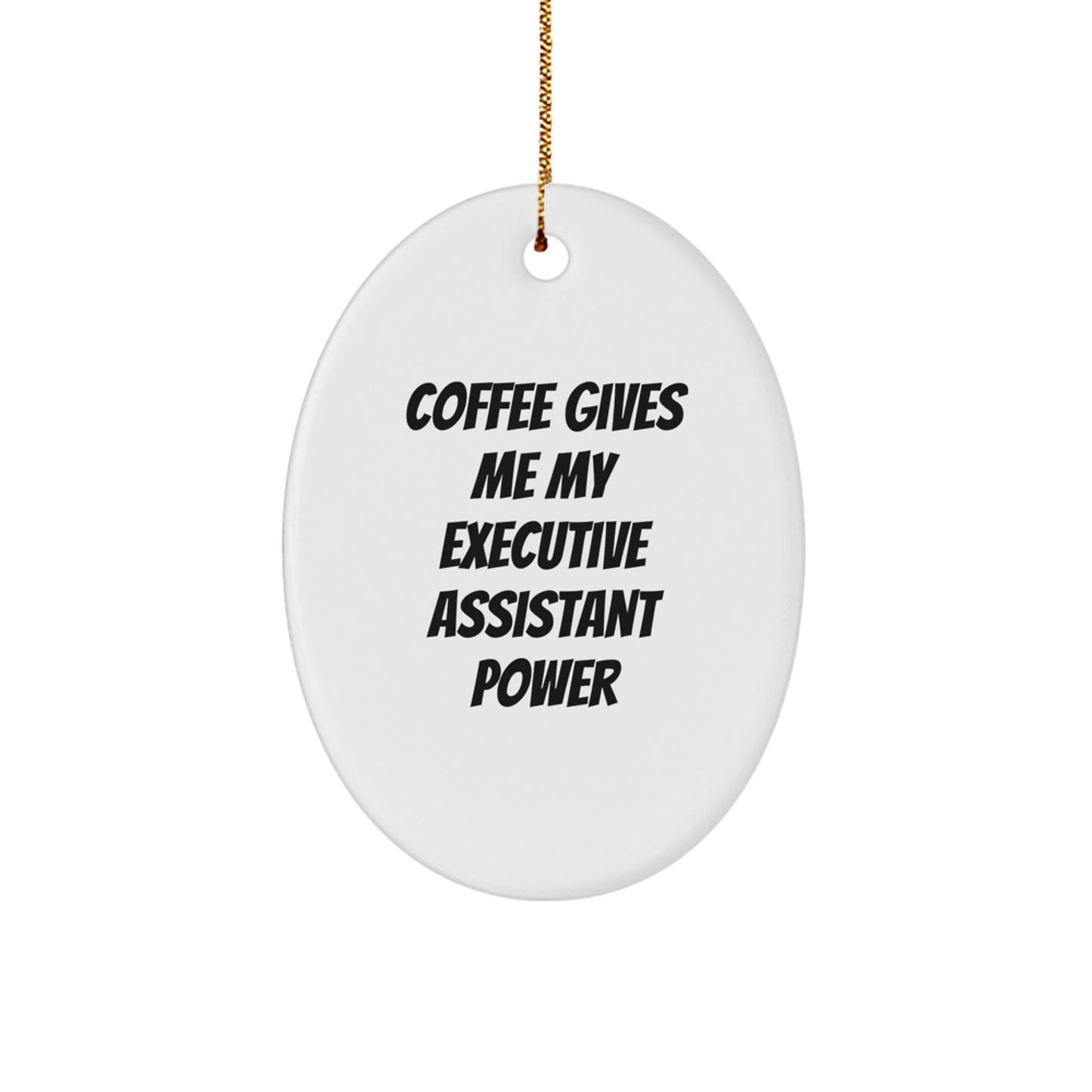 - This oval ornament is a thoughtful and unique gift for your Executive Assistant, showcasing the quote 'Coffee Gives Me My Executive Assistant Power' that says it all.