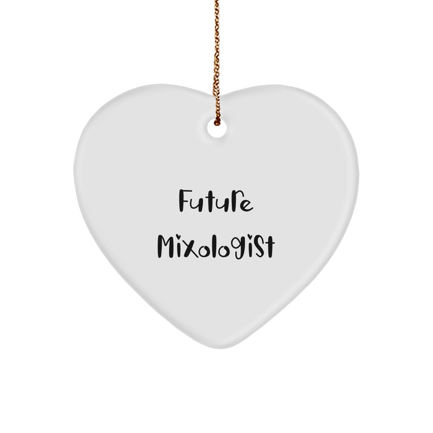 - This heart-shaped ornament is a thoughtful gift for friends and family who love to mixology, making it a great way to show your appreciation for their love of cocktails and spirits. The funny quote 'Future Mixologist' is a fun and unique way to celebrate their passion for mixology.