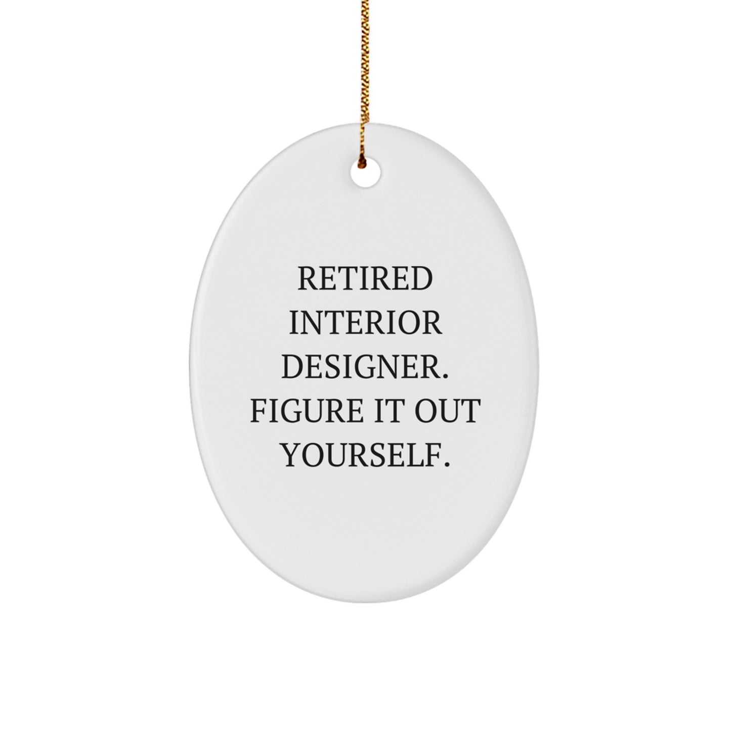 - A fun and quirky way to show your appreciation for their skills and creativity - 'Retired Interior Designer. Figure It Out Yourself.' Oval Ornament, perfect for decorating and making spaces beautiful