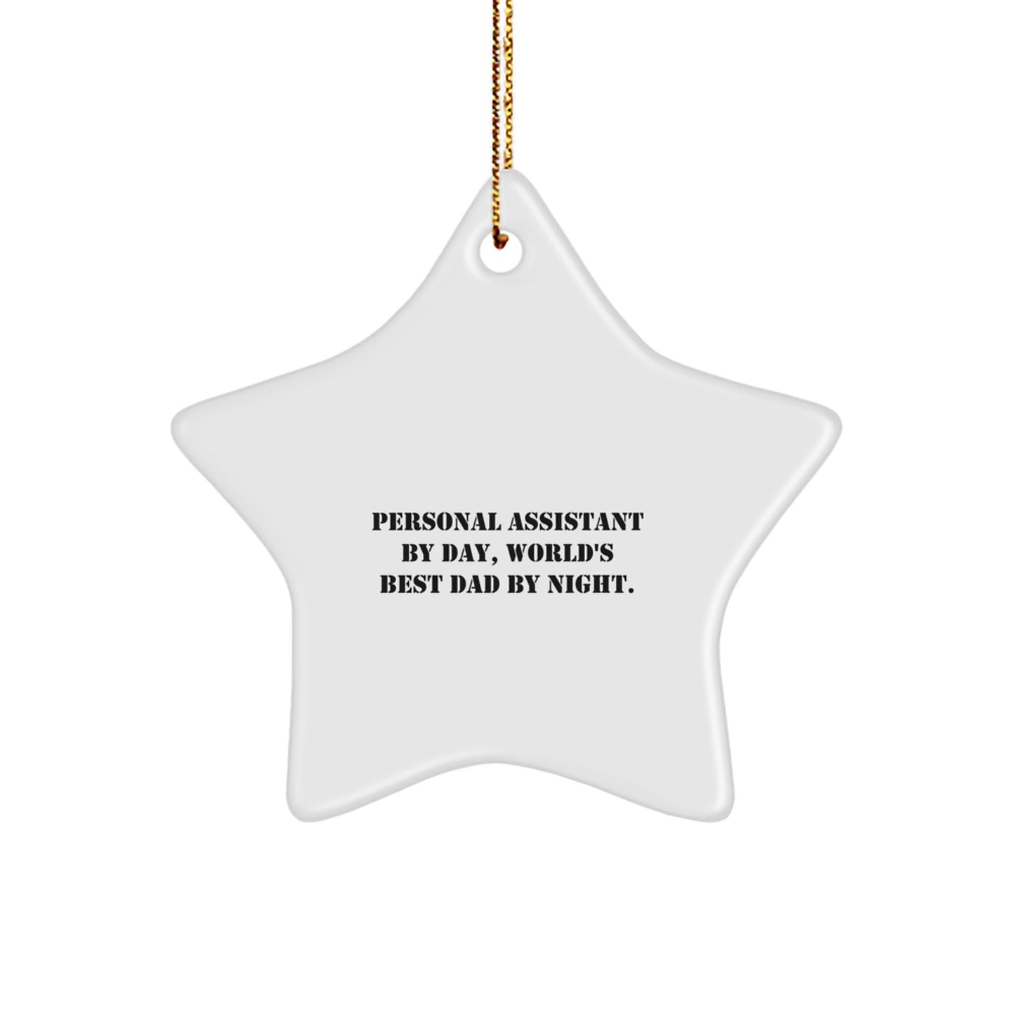 - This Star Ornament is a thoughtful gift for any Personal Assistant, showcasing their role in your life with the quote 'Personal Assistant By Day, World's Best Dad By Night.' printed on it.